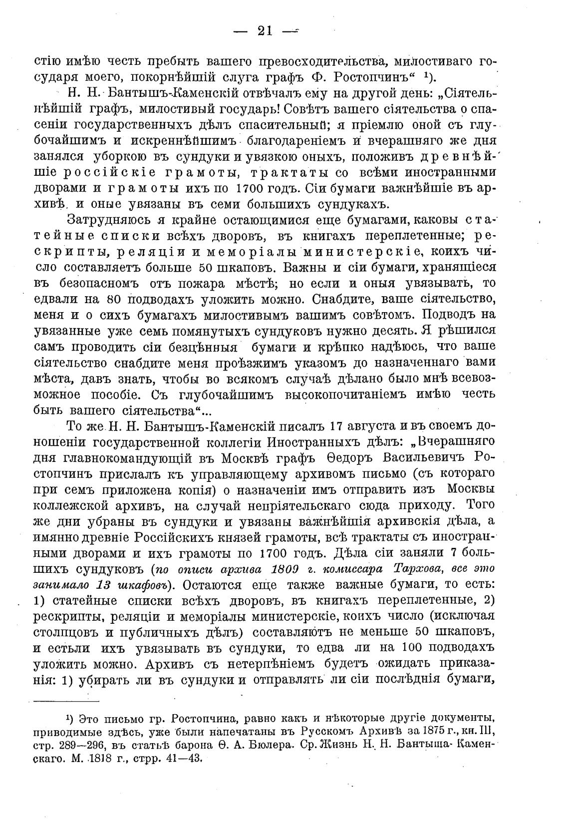 Н. Н. • Бантышъ-КаменскЈй отйчалъ ему на другой день: