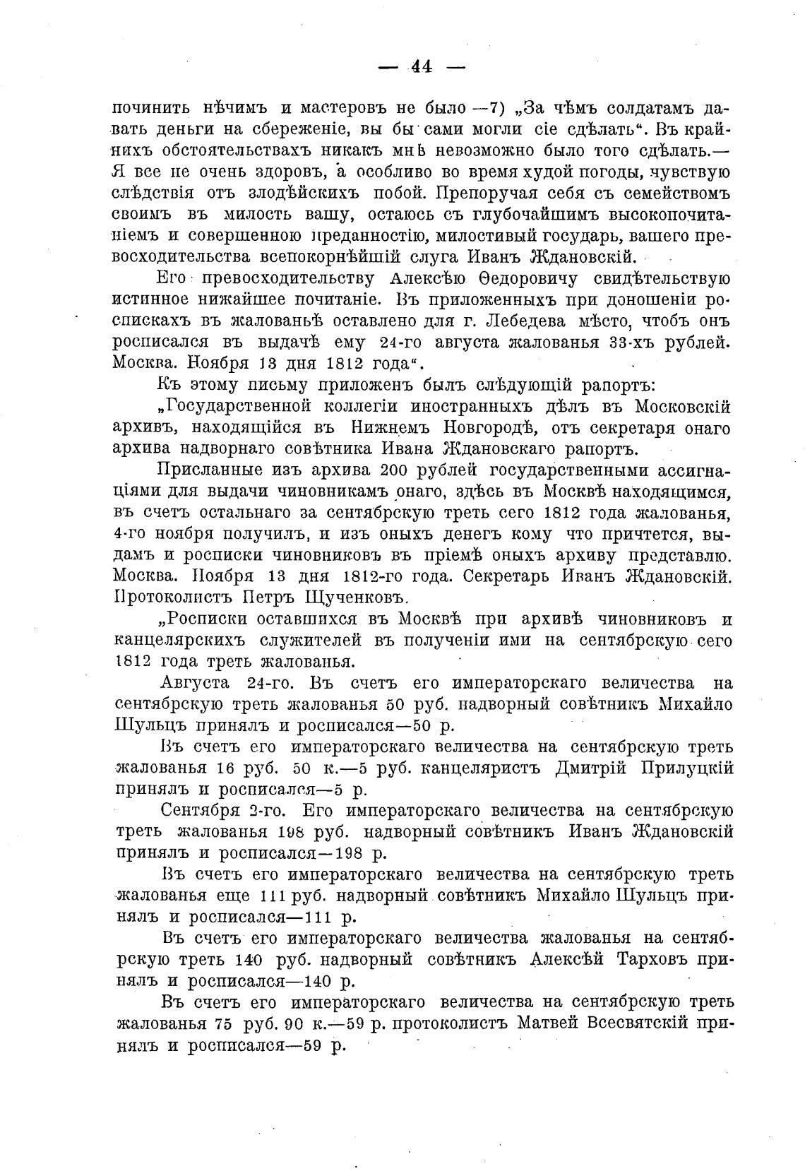 Москва. 11оября 13 дня 1812-го года. Секретарь Ивань Ждановскћй.