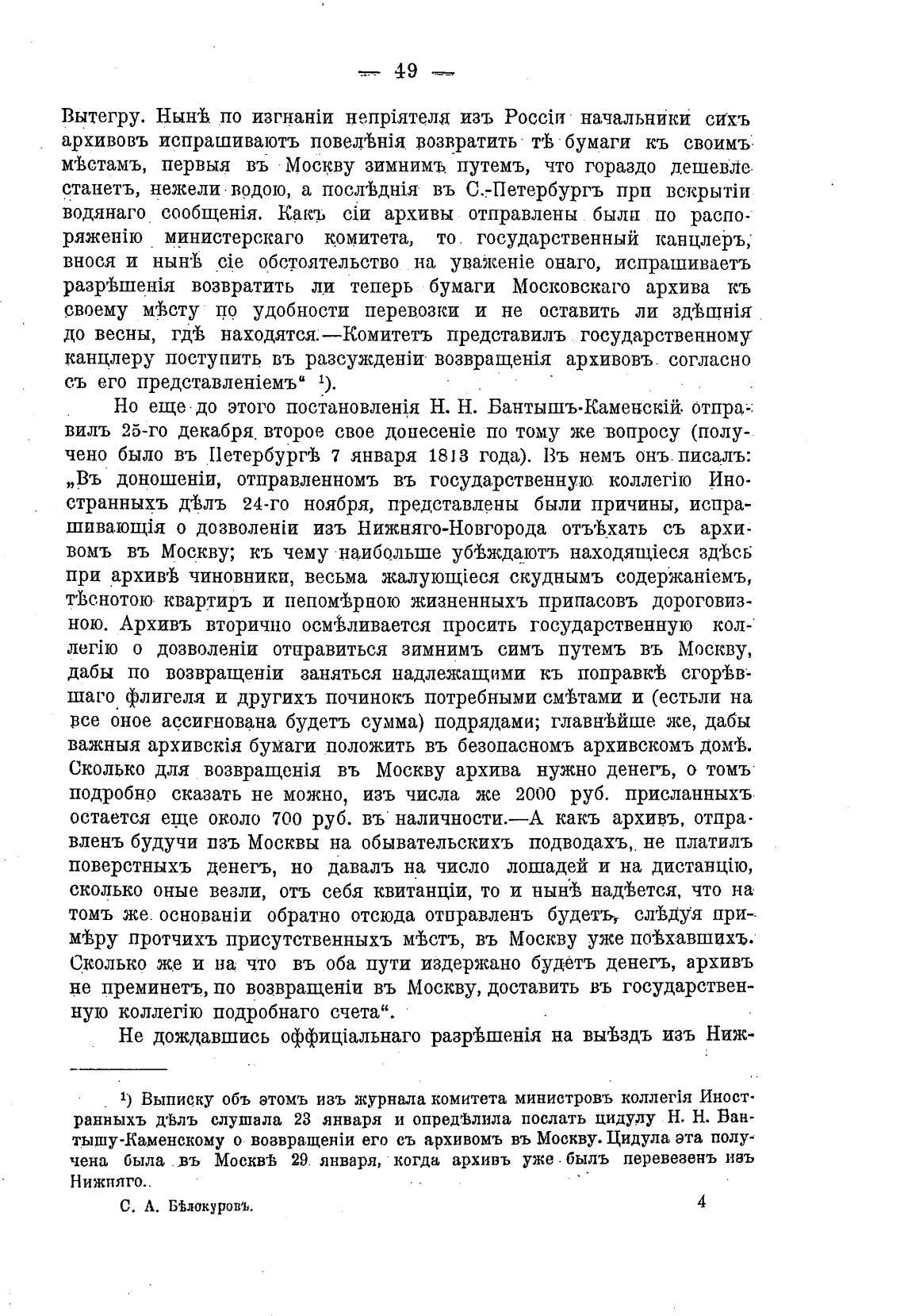 Сколько для въ Москву архива нужно денегъ, о томъ
