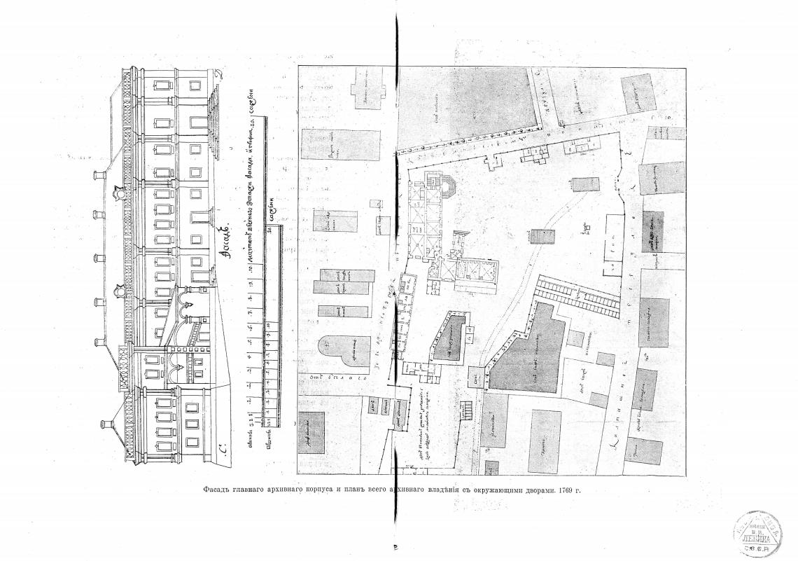 фасадь архивнаго кордуса и плавь всего а владћв'п съ окружающими дворами, 1769 г,
