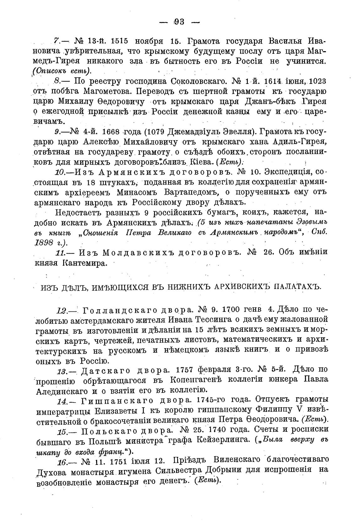 ИЗЪ Девлъ, шЛющихся ВЪ НИЖНИХЪ АРХИВСКИХЪ IIAJIATAXb.