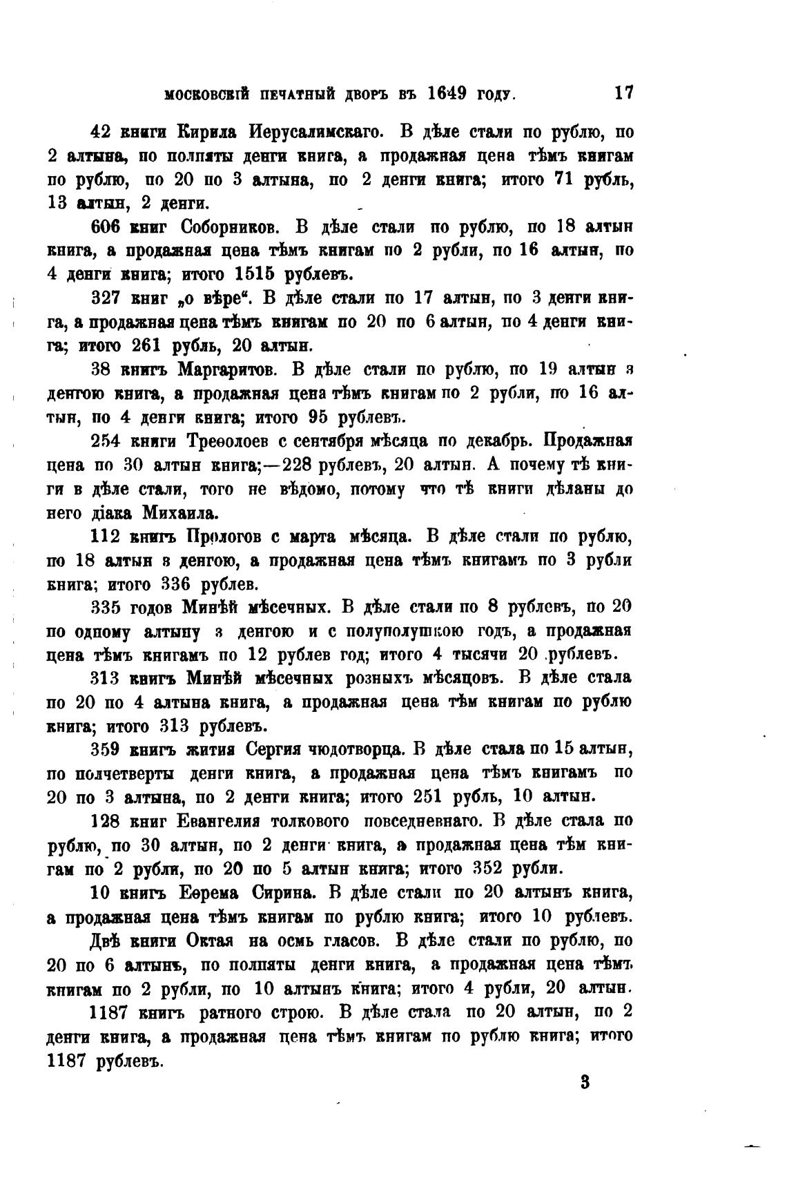 по 18 алтын в денгою, а продвжная цена ТВт, книгамъ по З рубли