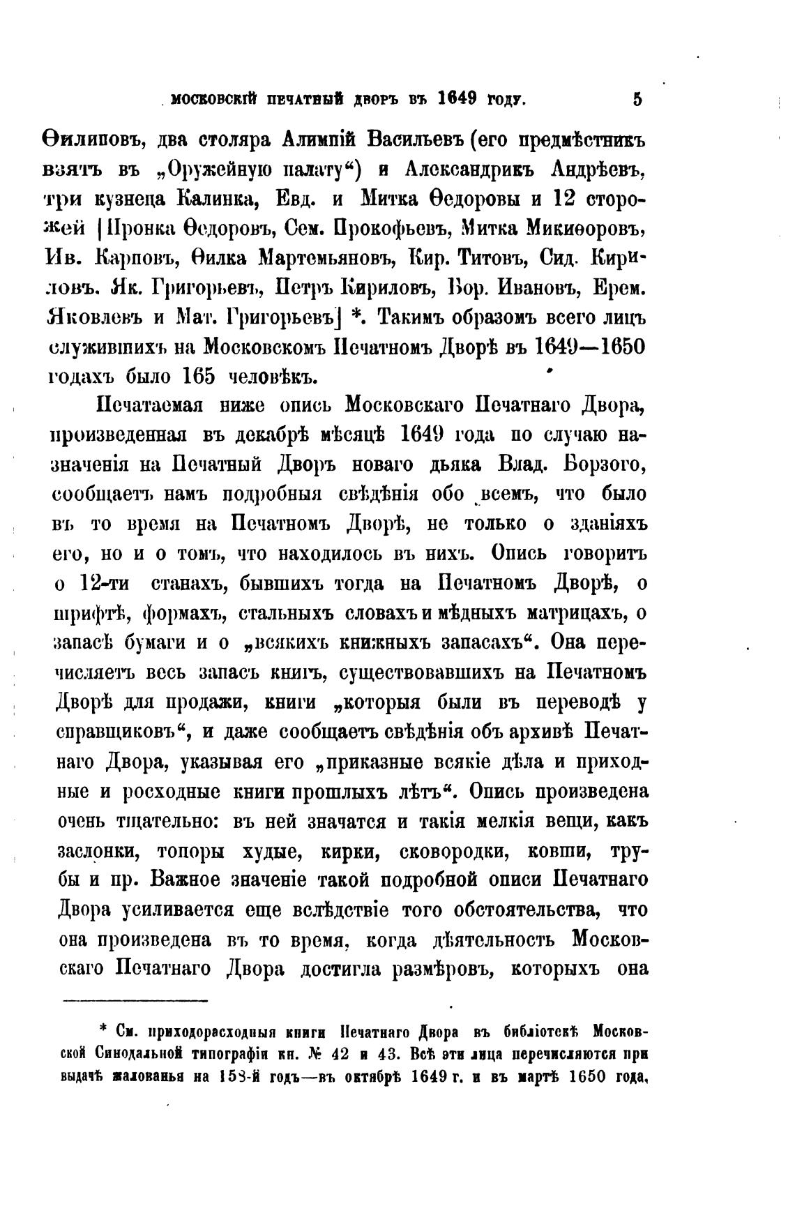 Печатаемая ниже опись Московскаго Печатнато Двора,