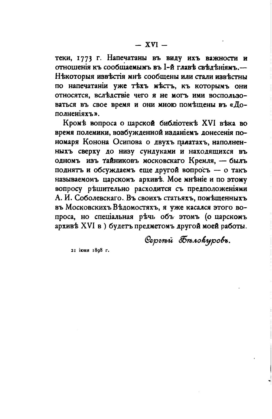архив± XVI в ) будетъ предметомъ другой моей работы.