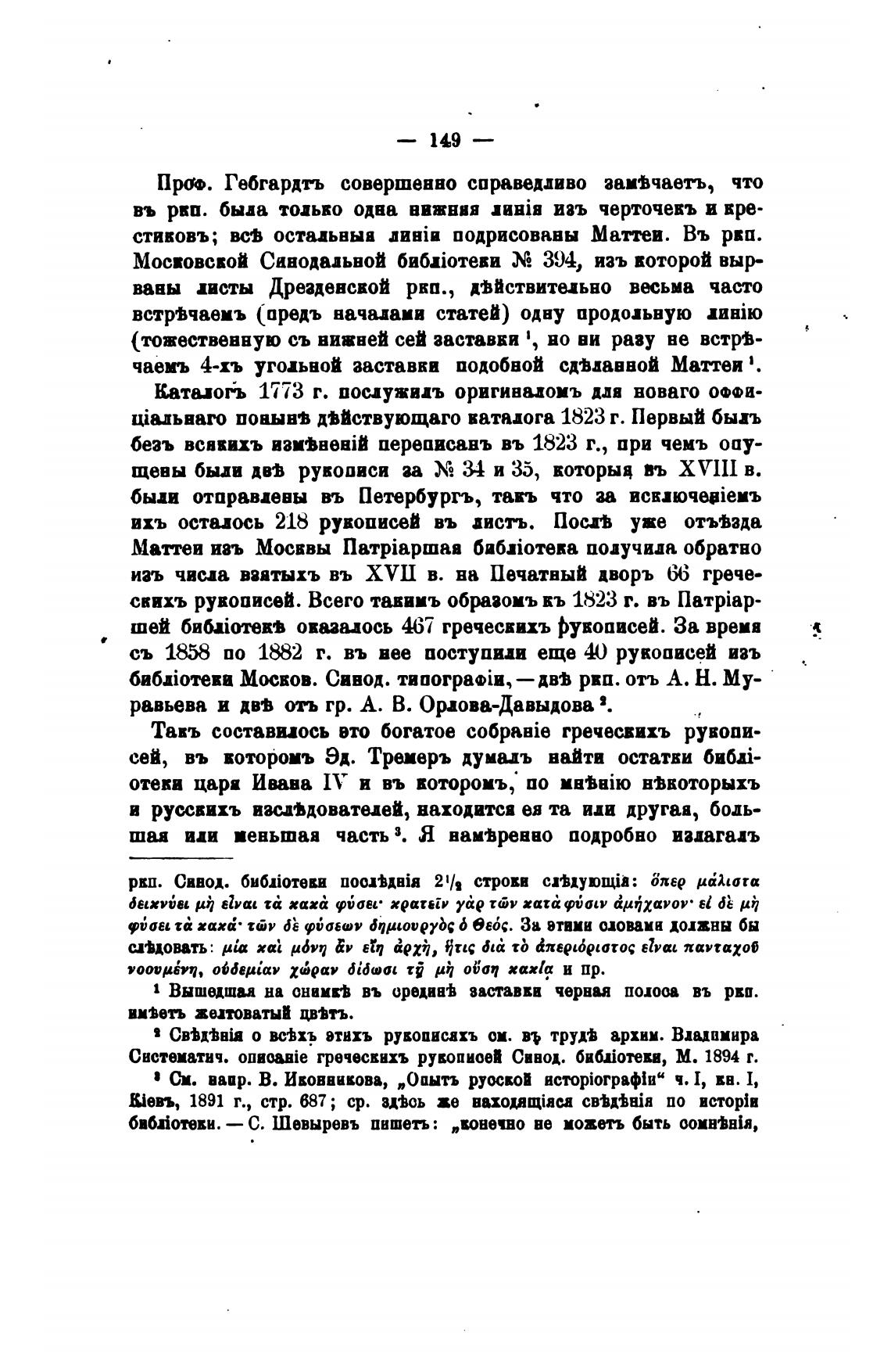 Свстептич. onaouie греческихъ рувопиоеИ Синод. бибјотеви, М. 1894 т.