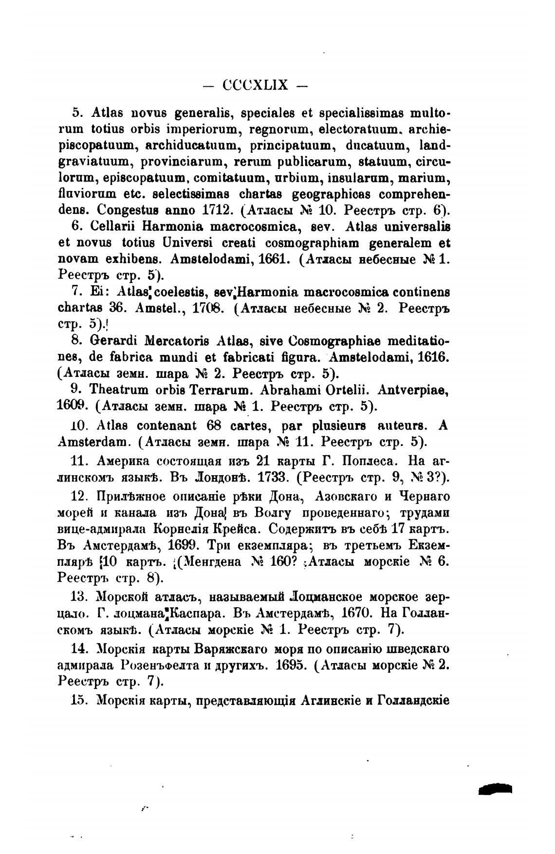 (Атласы земн. шара Хе 2. Реестръ стр. 5).