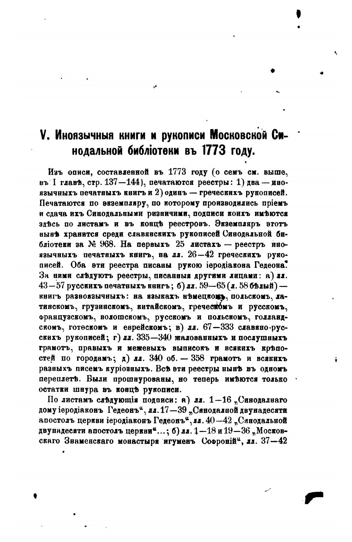 V. Иноязычныя книги и рукописи Московской Си-