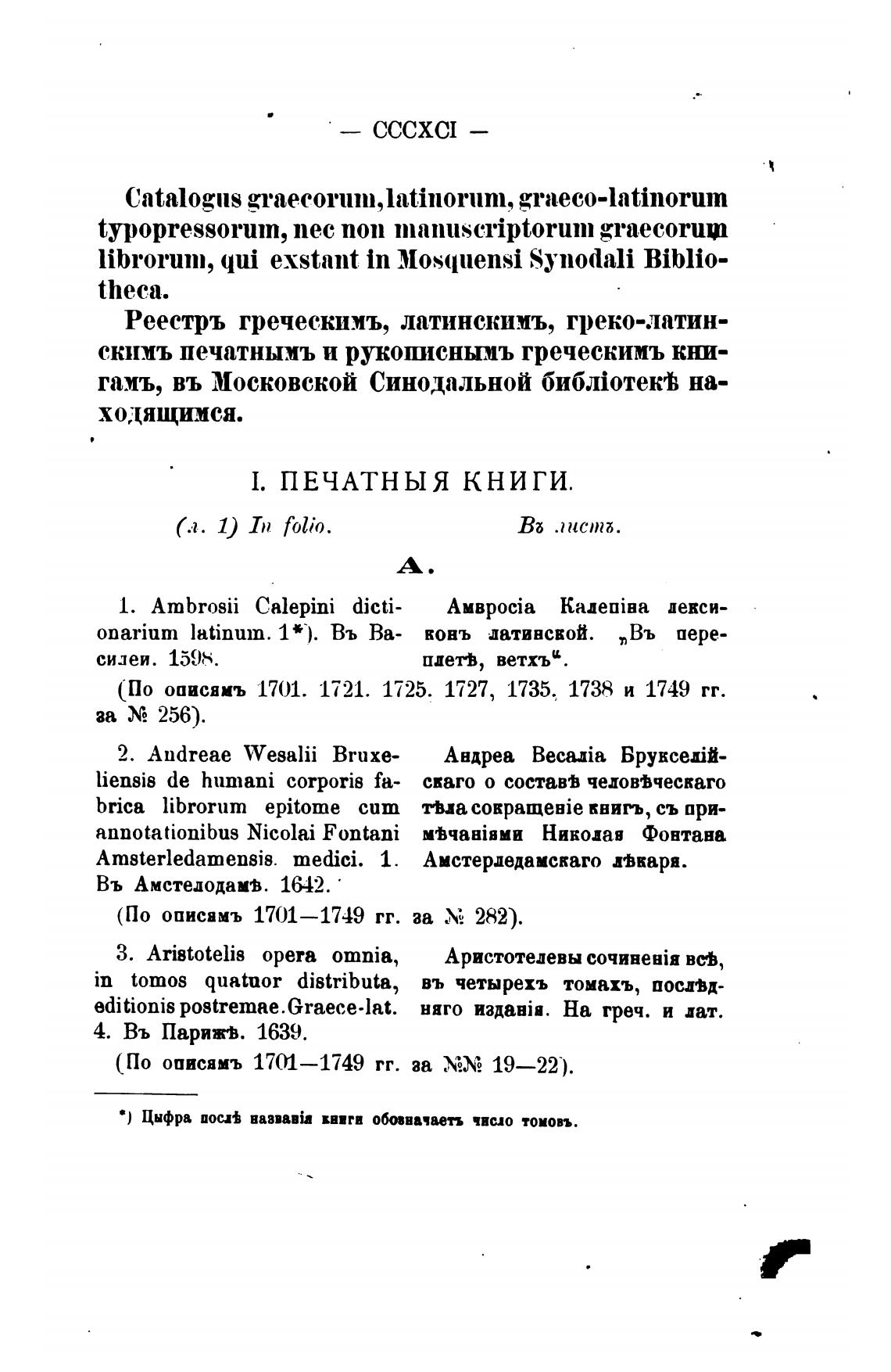 Реестръ греческимъ, латинскимъ, греко-латин-