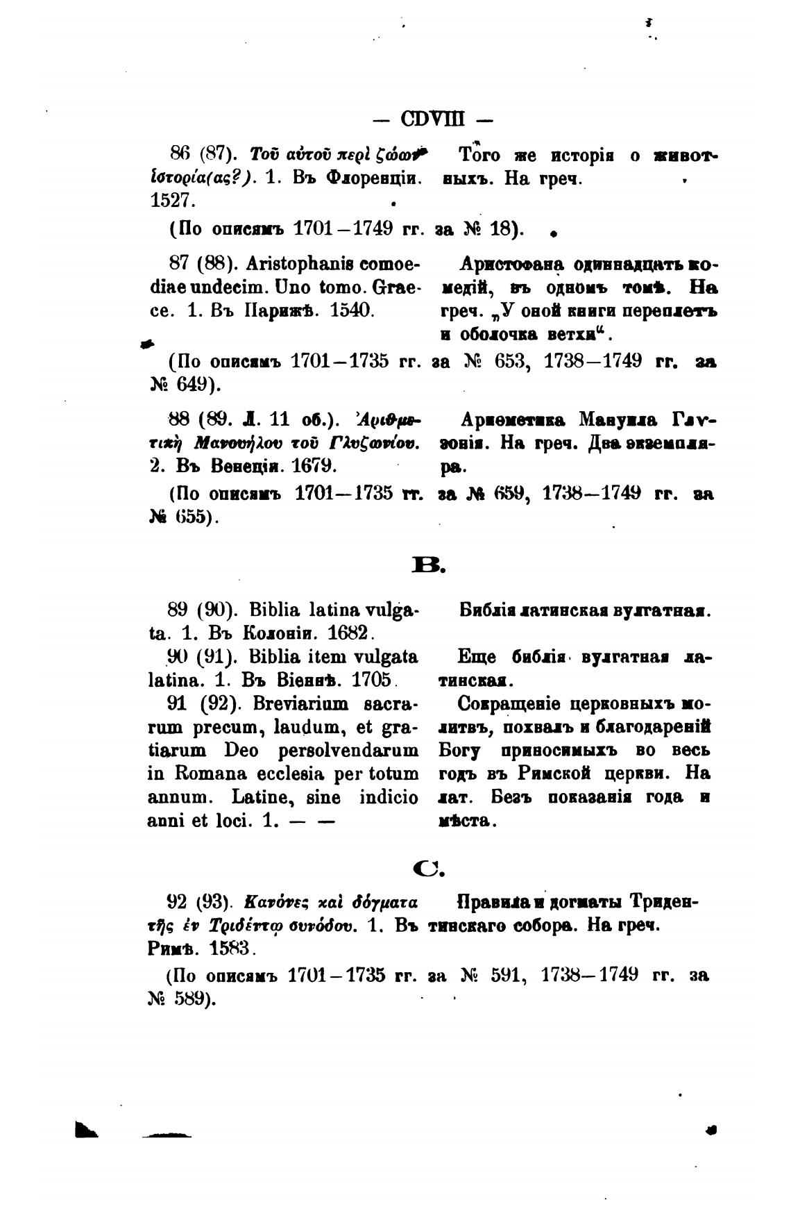(По описямъ 1701 —1735 гг. за Хе 591, 1738— 1749 гг. за