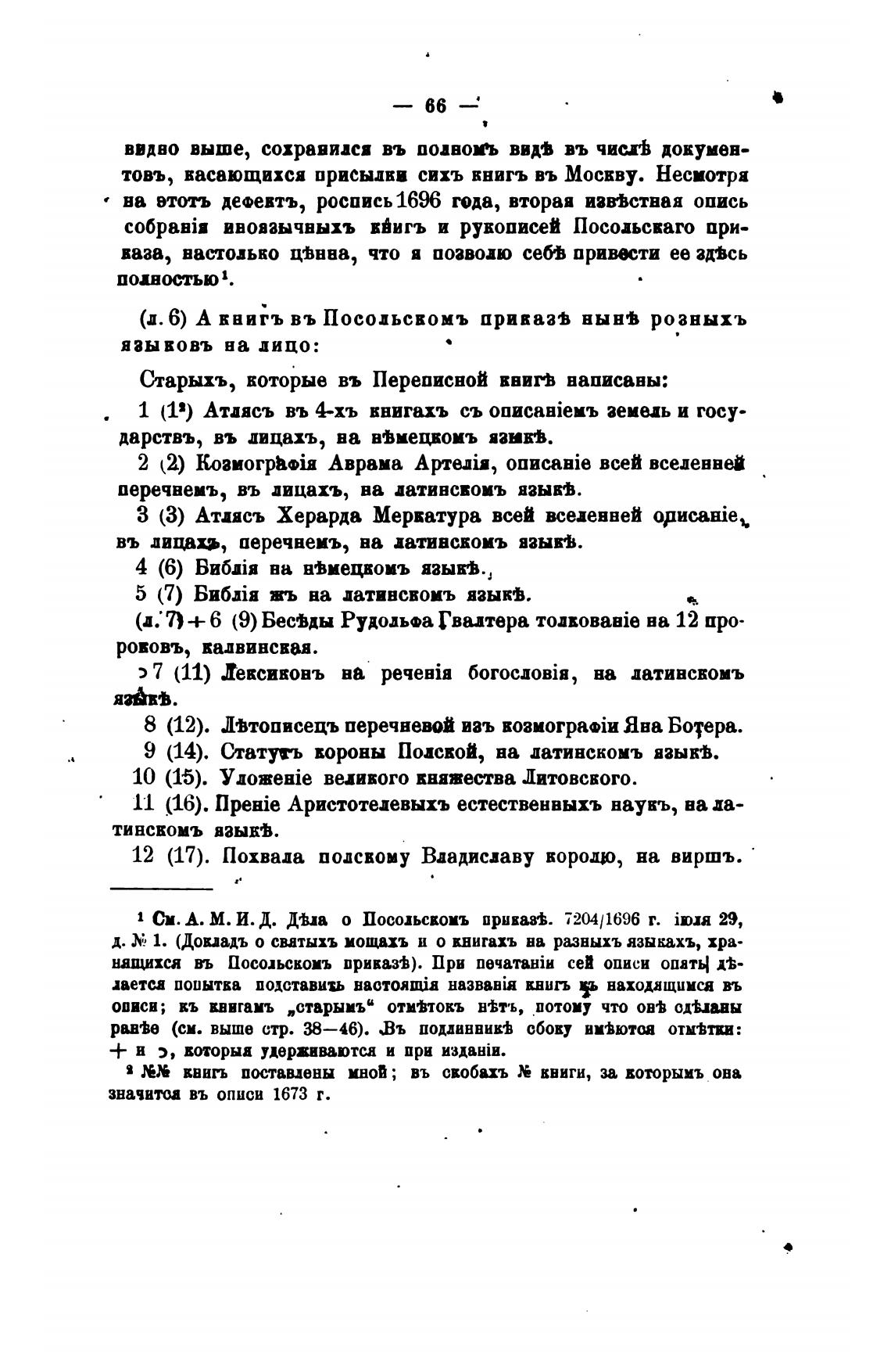 Статугь вороны Полсвой, ва латинскомъ взыкв.
