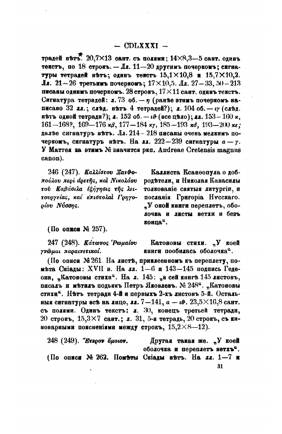 20 строкъ, 15,3 Х 7 савт.; л. 31, 5-я тетрадь, 20 строкъ, съ ки-