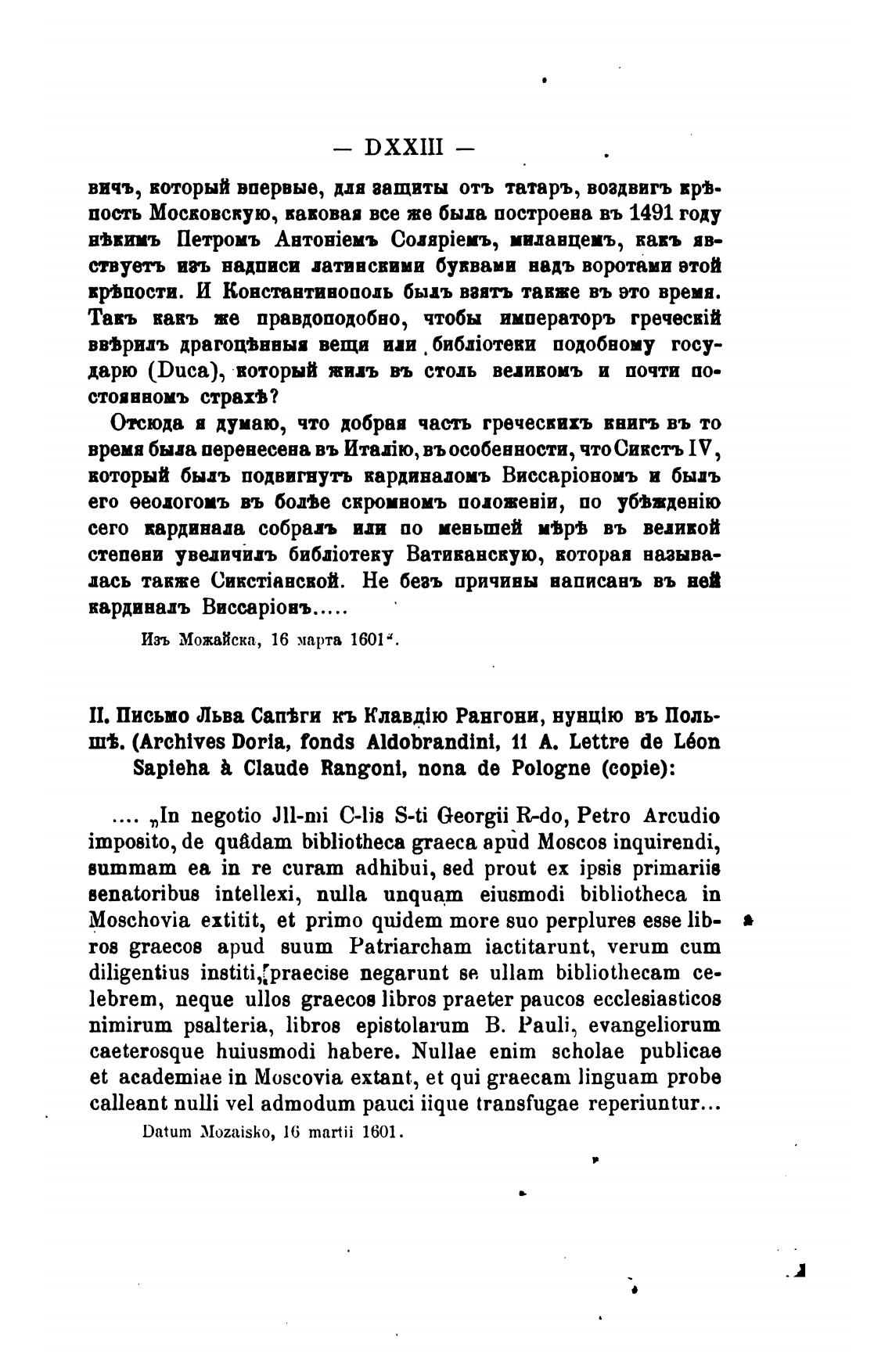 П. Письмо Льва Сап%ги кь Рангони, нунц1ю въ Поль-