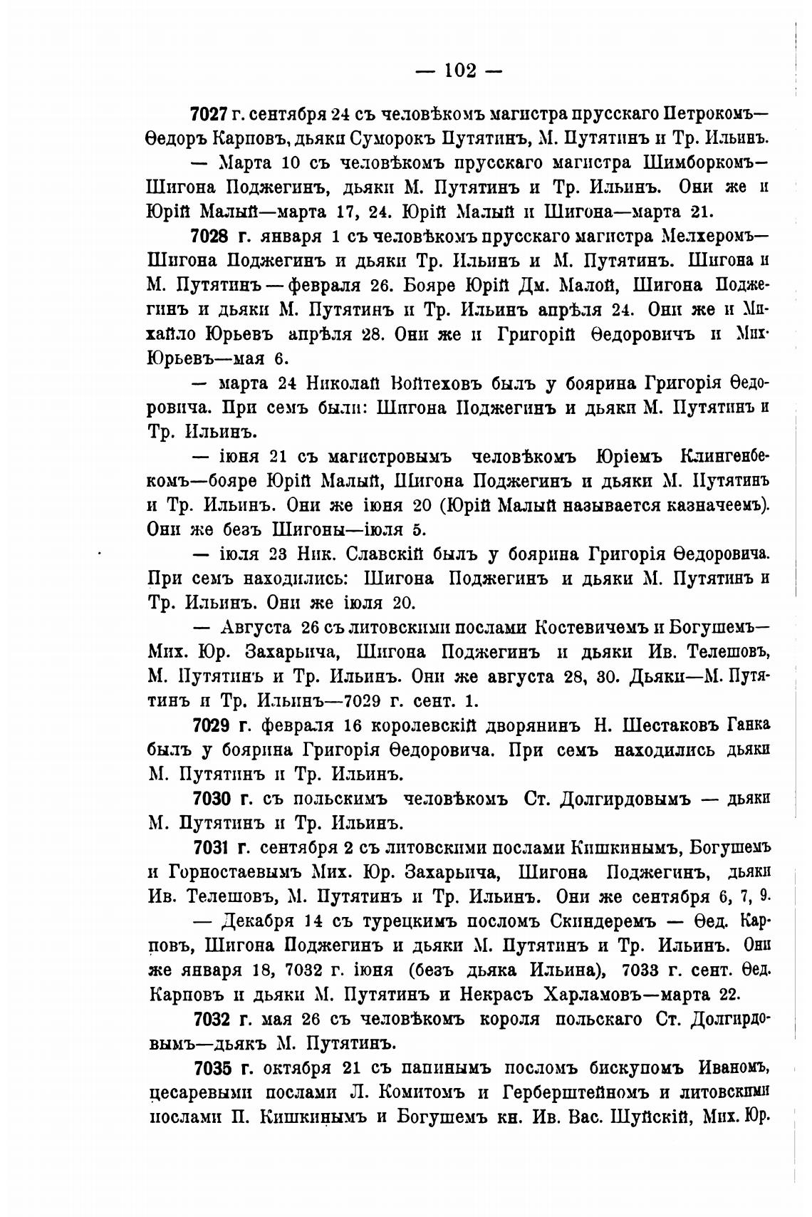 При семь находились: Шигона Поджегинъ и дьяки М. Путятинъ и
