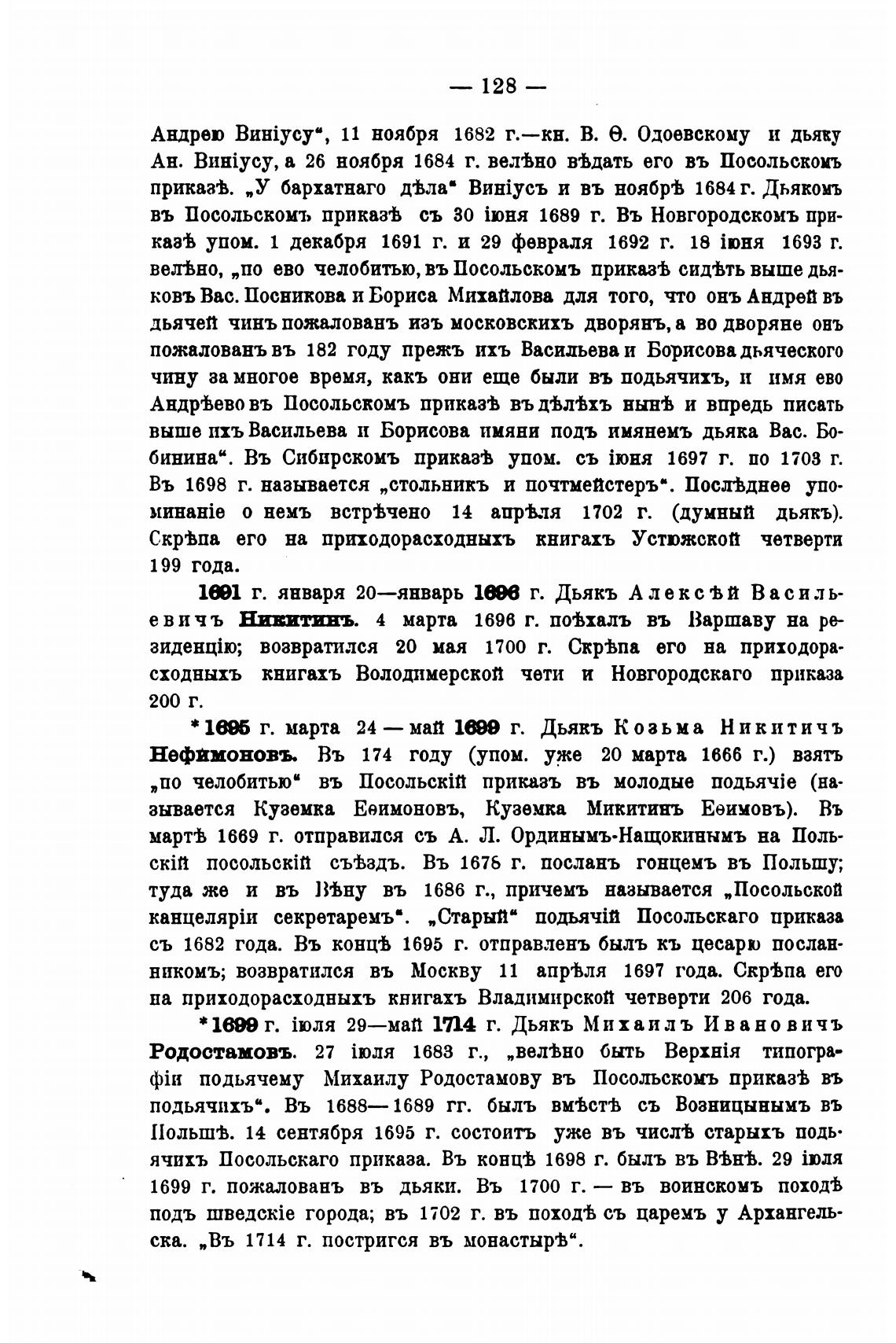ячихъ Посольскаго приказа. Въ кон[ф 1698 г. быль въ В'Ьн•В. 29 iI)JM