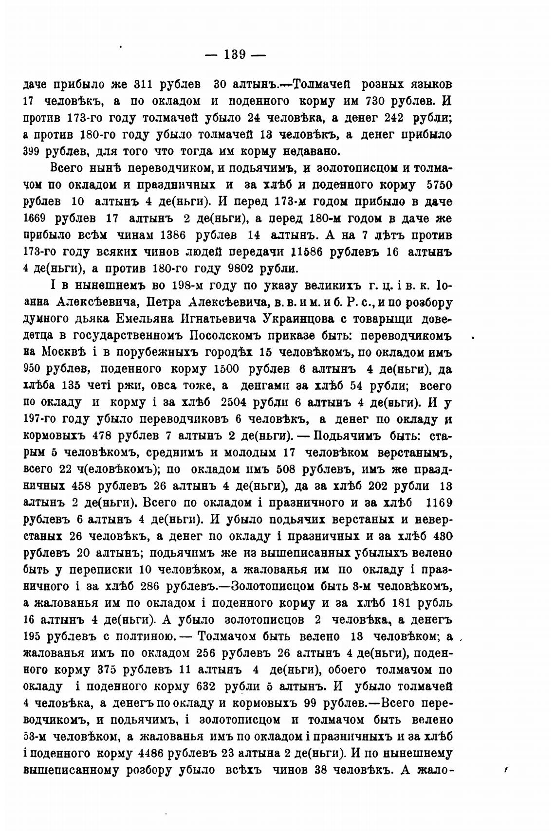 окладу i поденного корму 632 рубли б алтынъ. И убыло толмачей