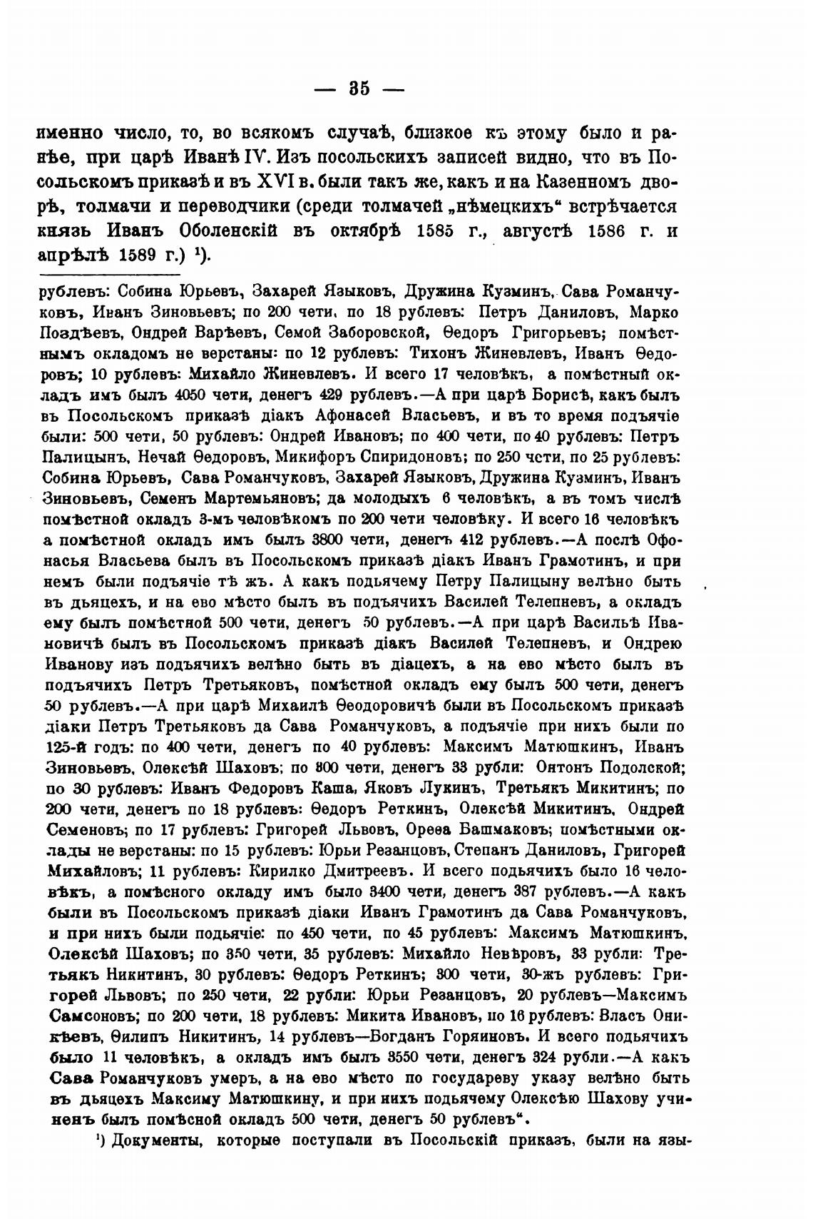 ОлевсМ Шаховъ; по 350 чети, 35 рублевъ: Михайло Невьровъ, 33 рубли: Тре-