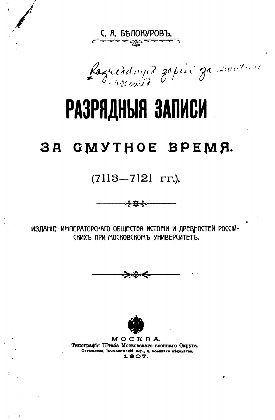 Типогрф Штаба Московеваго военнаго Округк