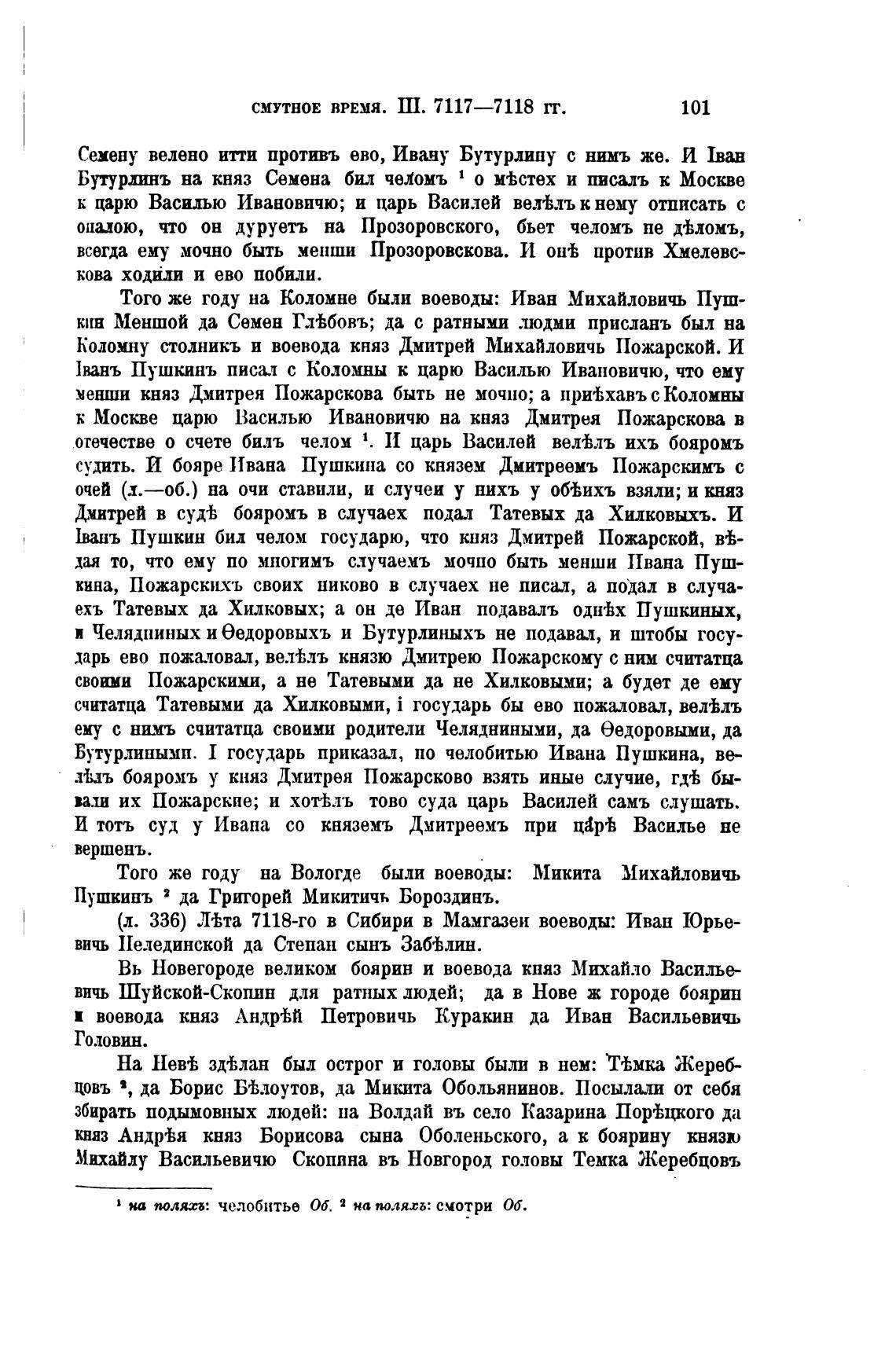 ]ванъ Пушкинъ писал с Коломны к царю Василью Ивановичю, что ему
