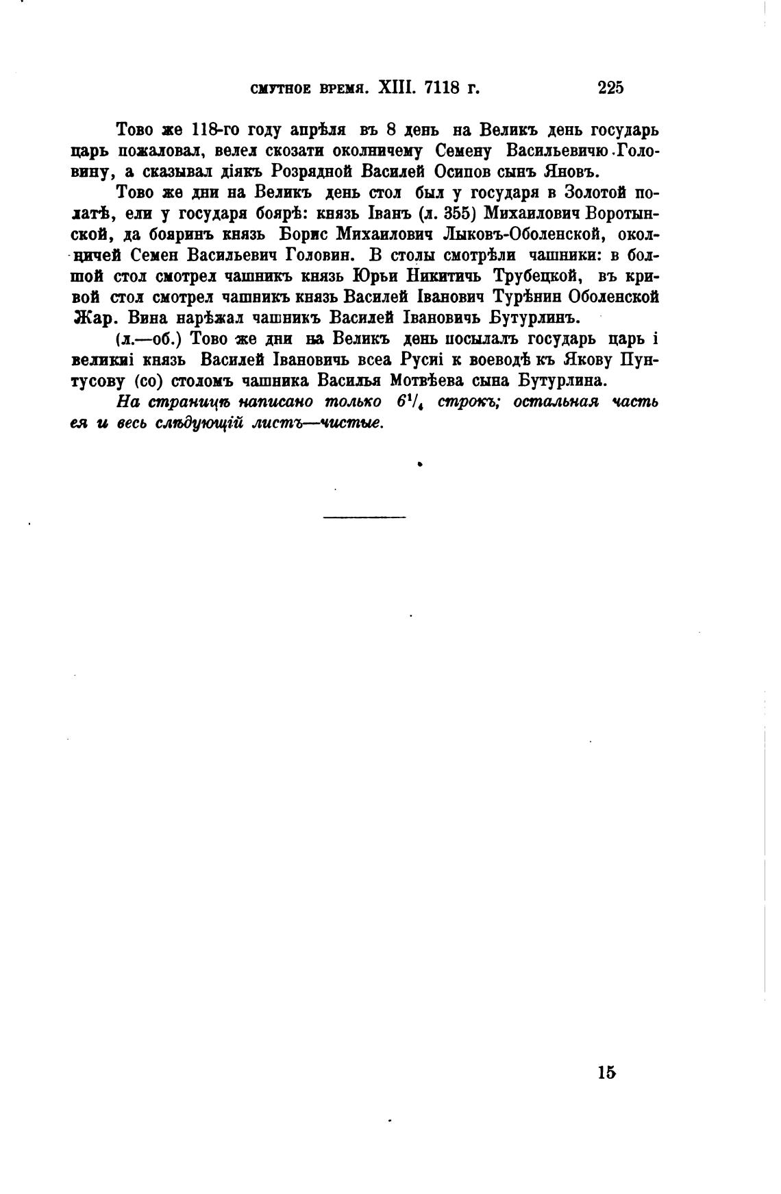 лам, ели у государя бояр±: князь 1ванъ (л. 355) Михаилович Воротын-