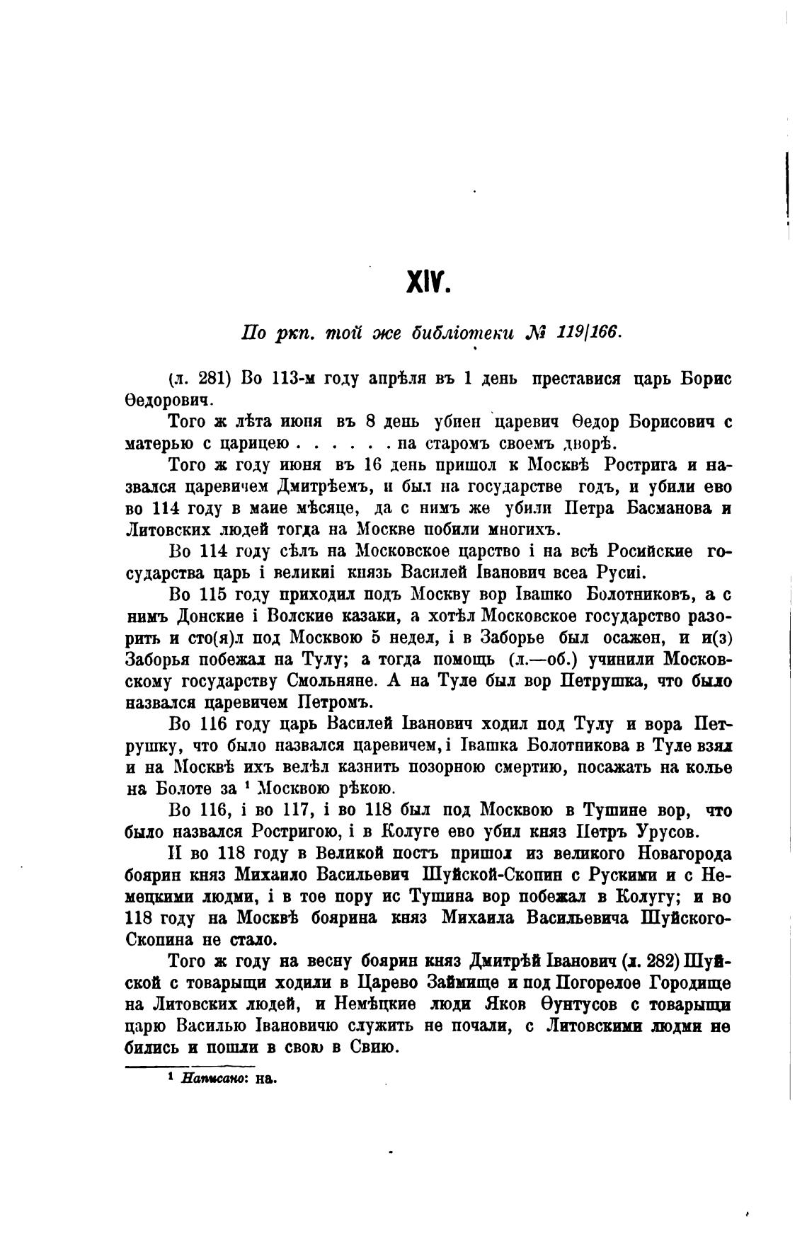 (л. 281) Во 113-м году апр±ля въ 1 день преставися царь Борис