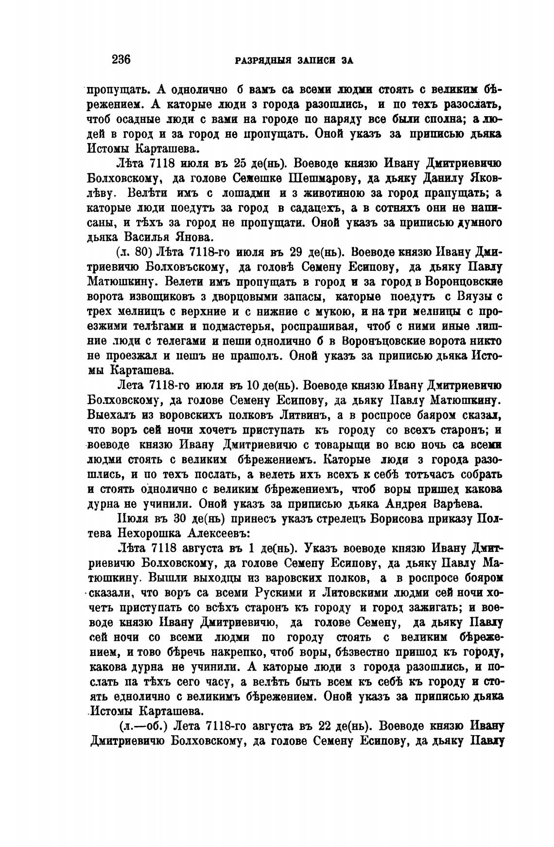 (л.—об.) Лета 7118-го августа въ 22 де(нь). Воеводе князю Ивану