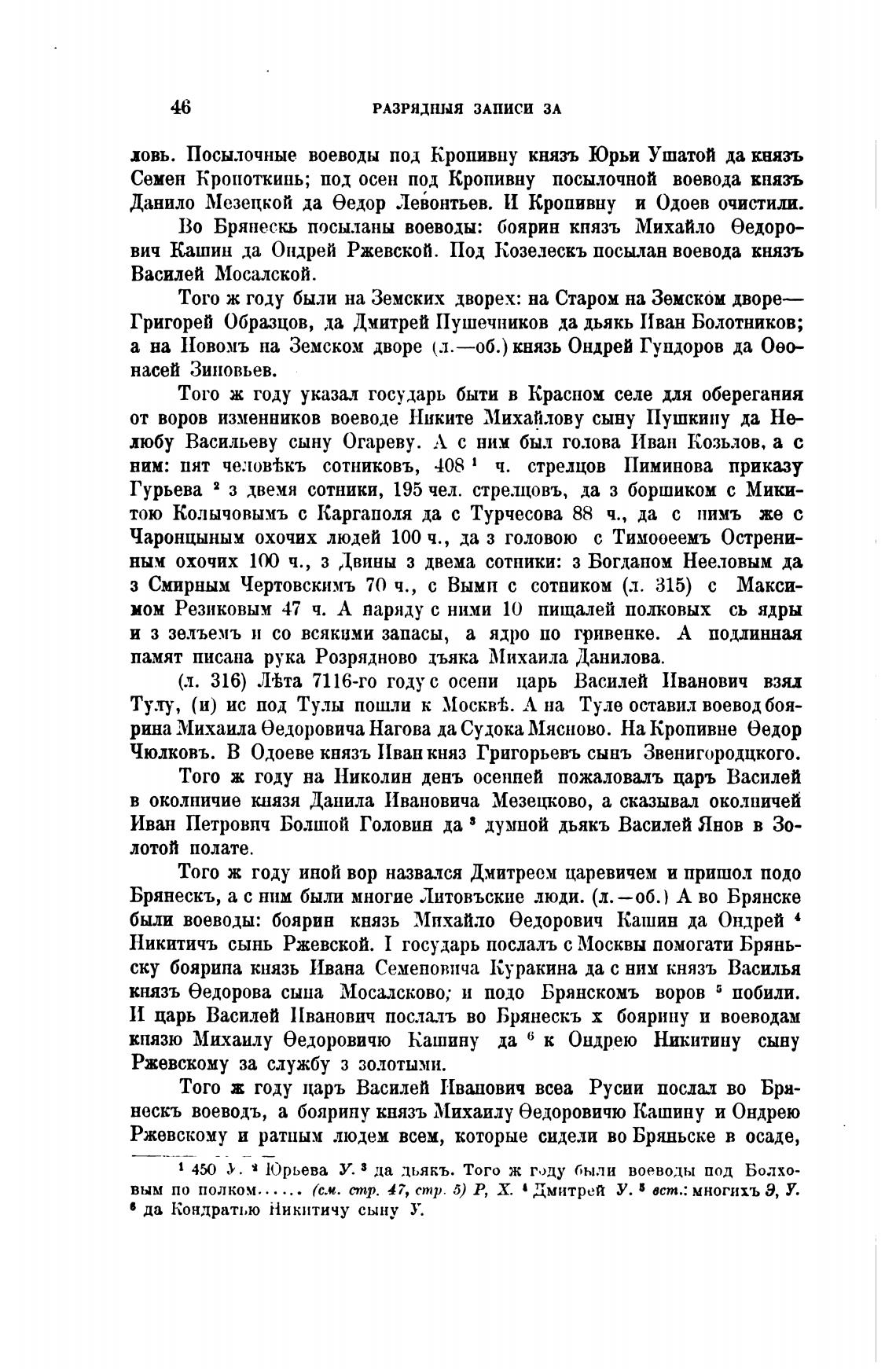 И царь Василей Иванович послалъ во Брянескъ х боярину и воеводам
