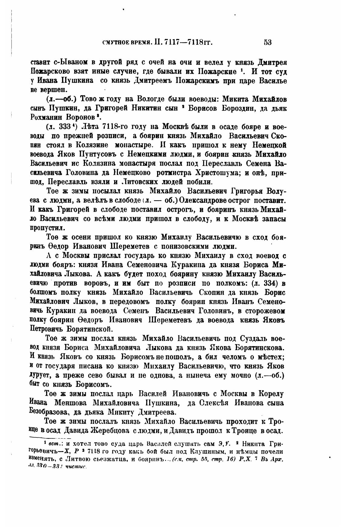 у Ивана Пушкина со князь Дмитреемъ Пожарскимъ при царе Василье