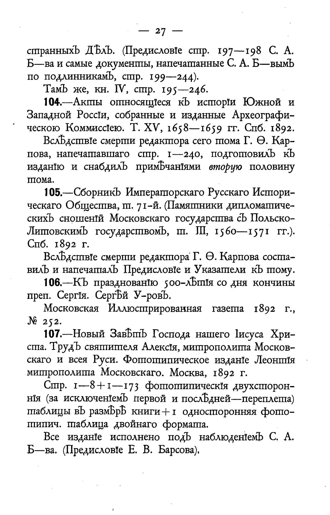 Б—ва. (Предислов!е Е. В. Барсова),
