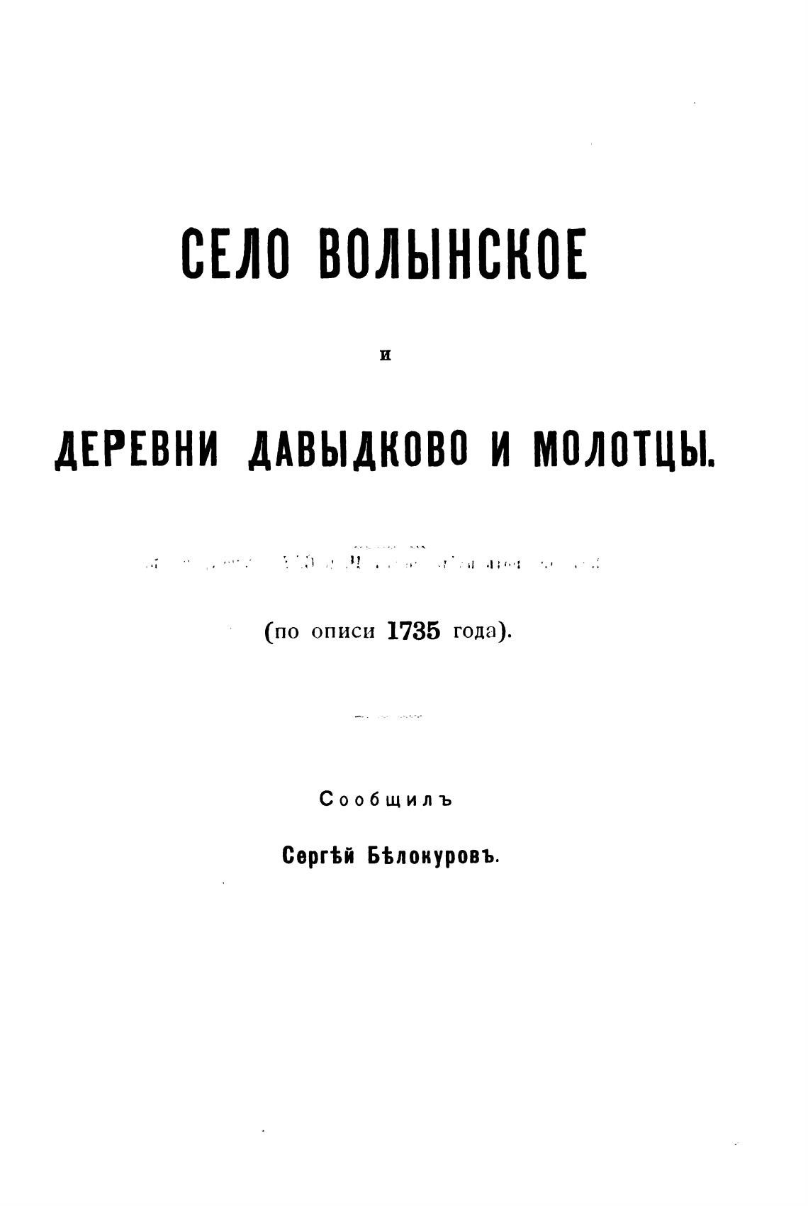 Село Волынское и деревни Давыдково и Молотцы (по описи 1735 года). - Белокуров С. А.