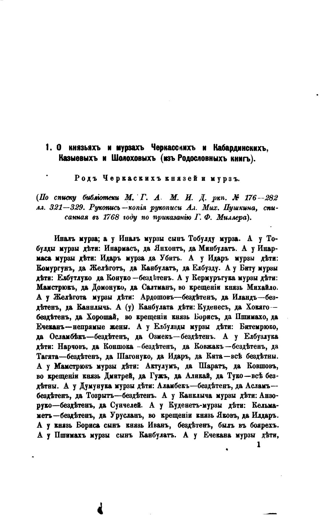 О князьяхъ и иурахъ Черкткихъ и Кабардинскихъ,