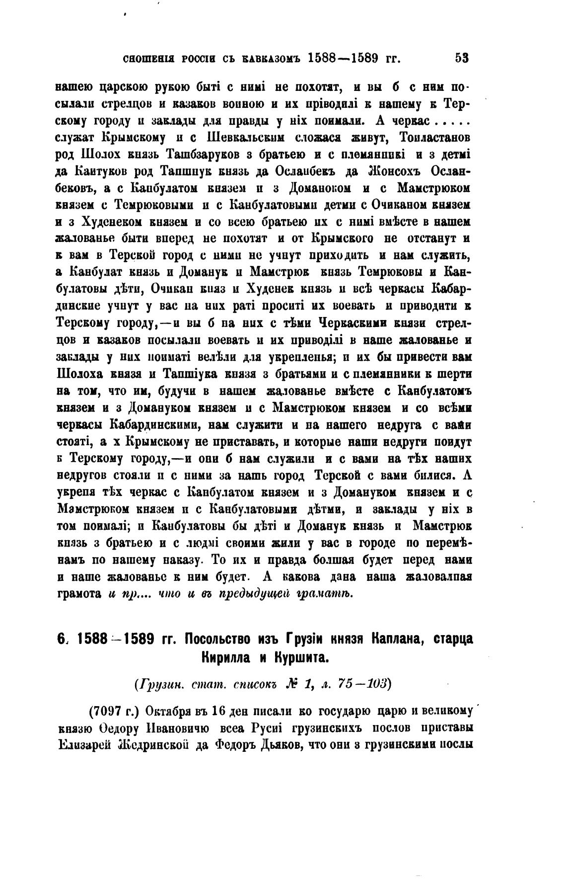 6, 1588 —1589 гг. Посольство изъ князя Каплана, старца