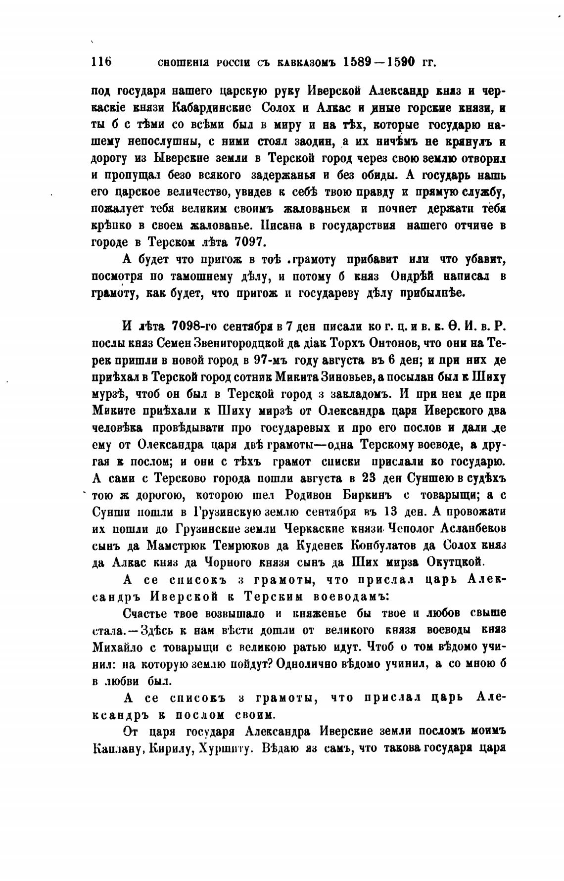 ему от Олексапдра царя дй грамоты—одна Терскому воеводе, а дру-