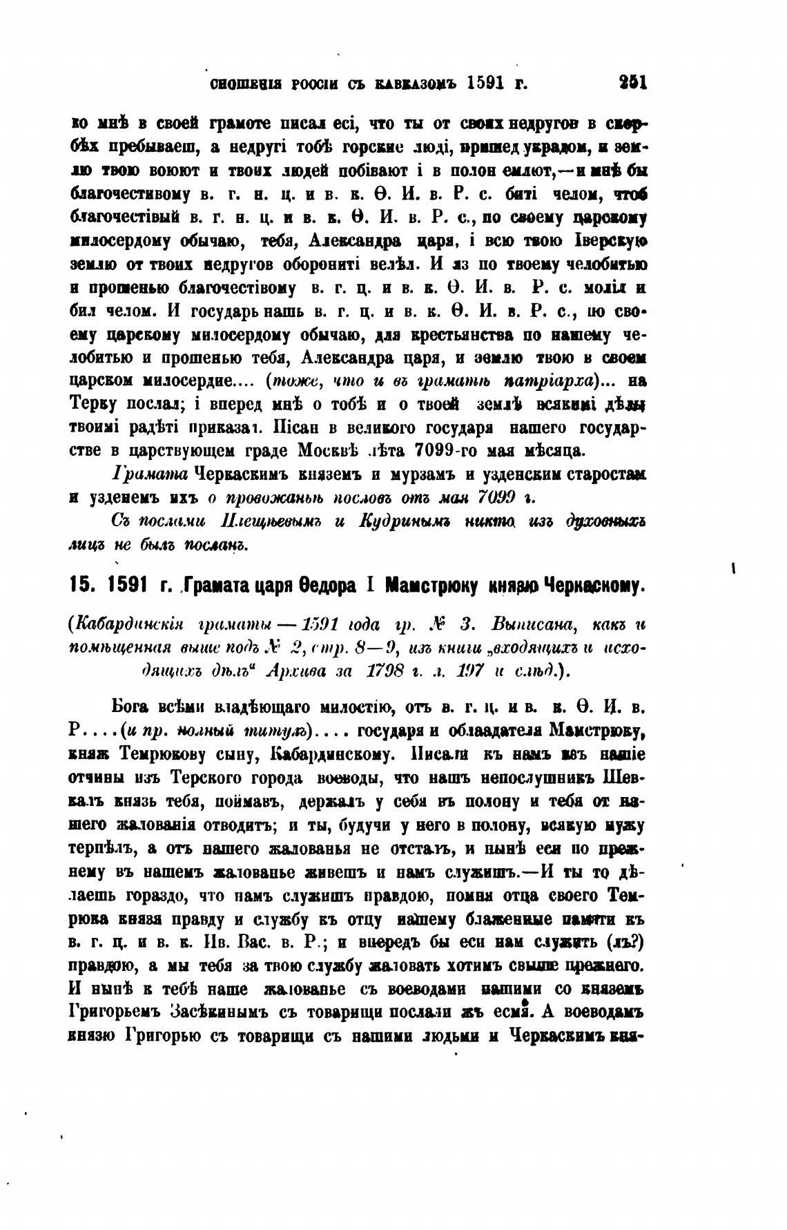 15. 1591 г. Грата царя Ведора Мистрюку княро Черниноиу.