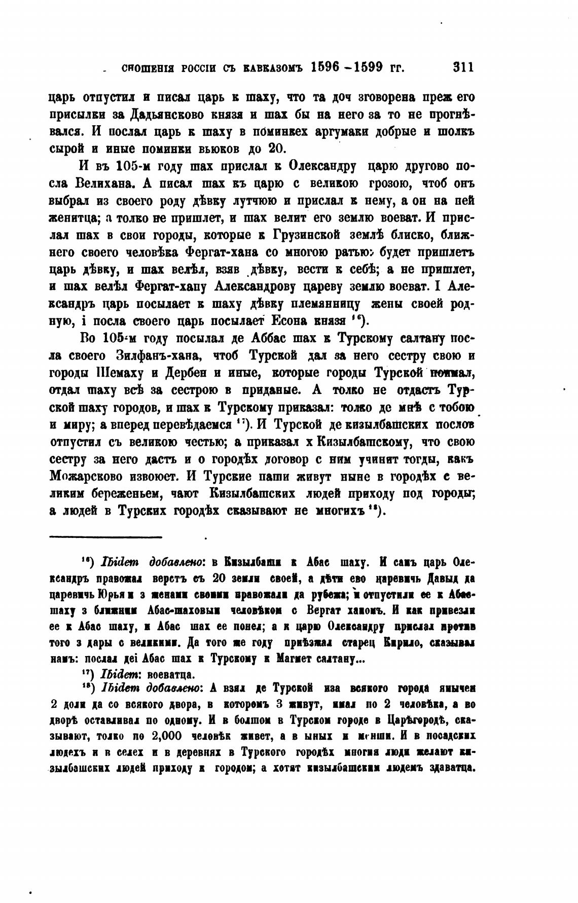 СНОШЕВШ РОССШ СЬ ВАВВАЗОМЪ 1596 —1599 ГГ.