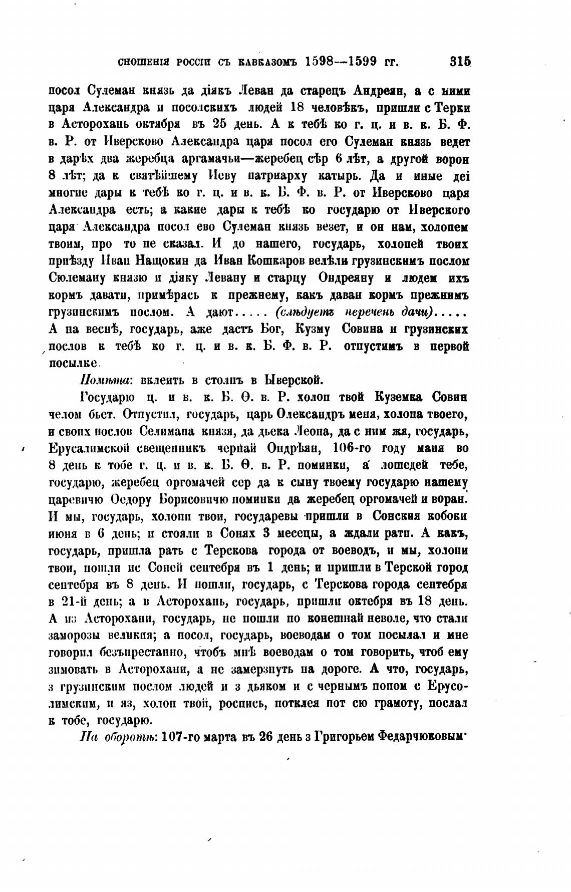 цара А.тександра посол ево Сулеман кнззь ведет, и он нам, холопеи