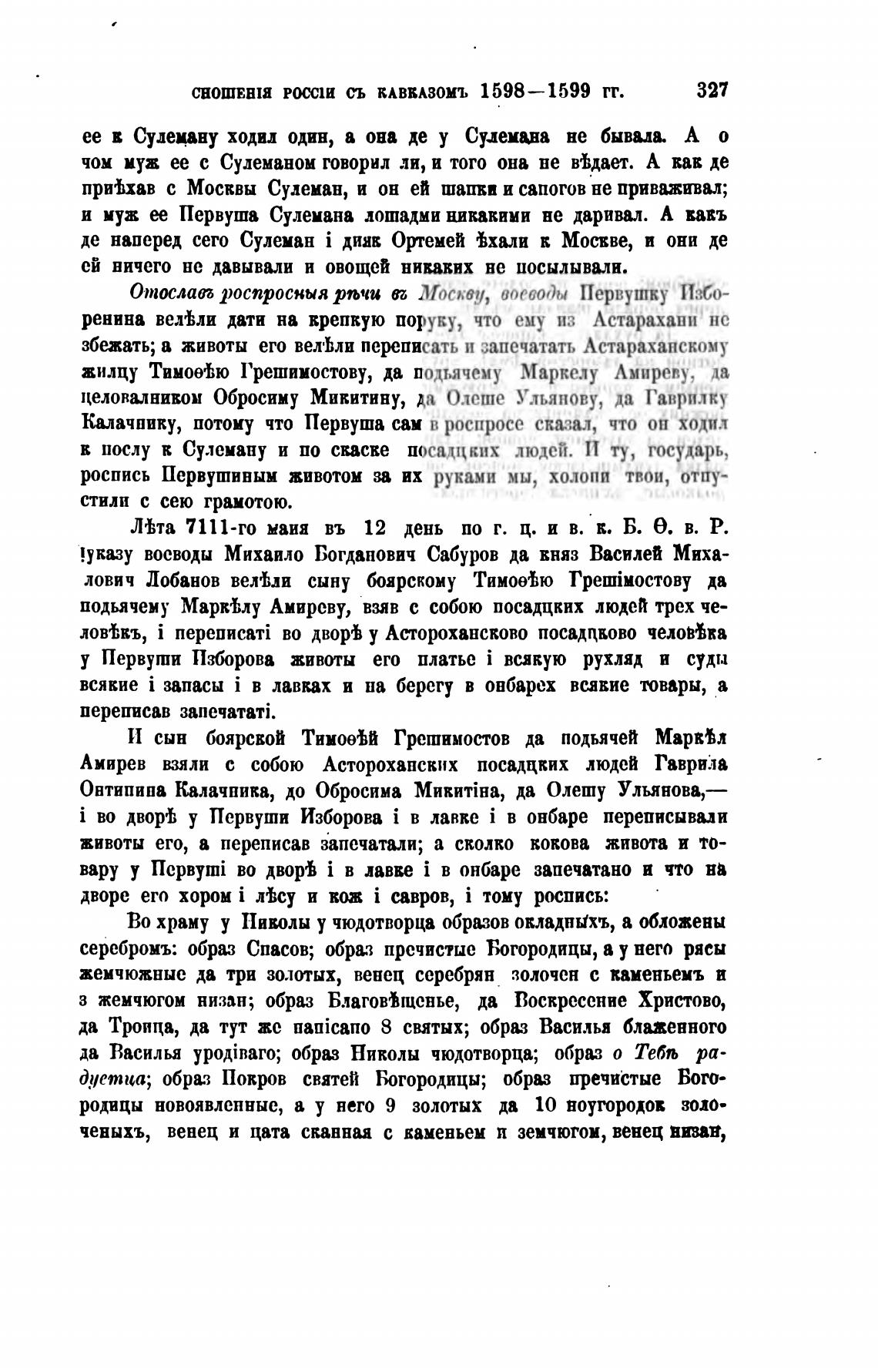 СНОШЕНИ РОССШ СЪ КАВВАЗОМ'Ь 1598—1599 ГГ.