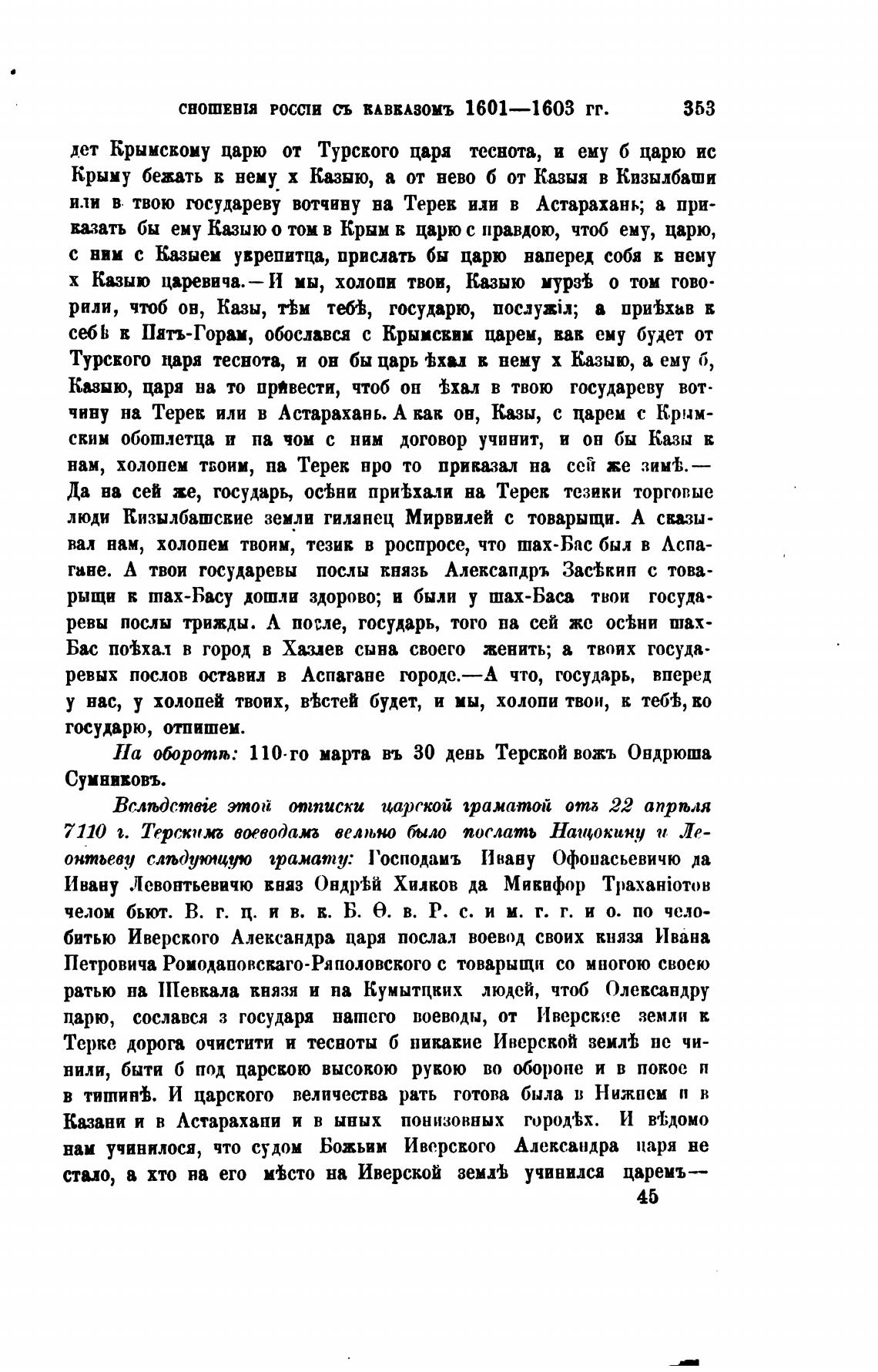 На Оротпљ: 110-го марта въ 30 день Терской вожъ Ондрюша