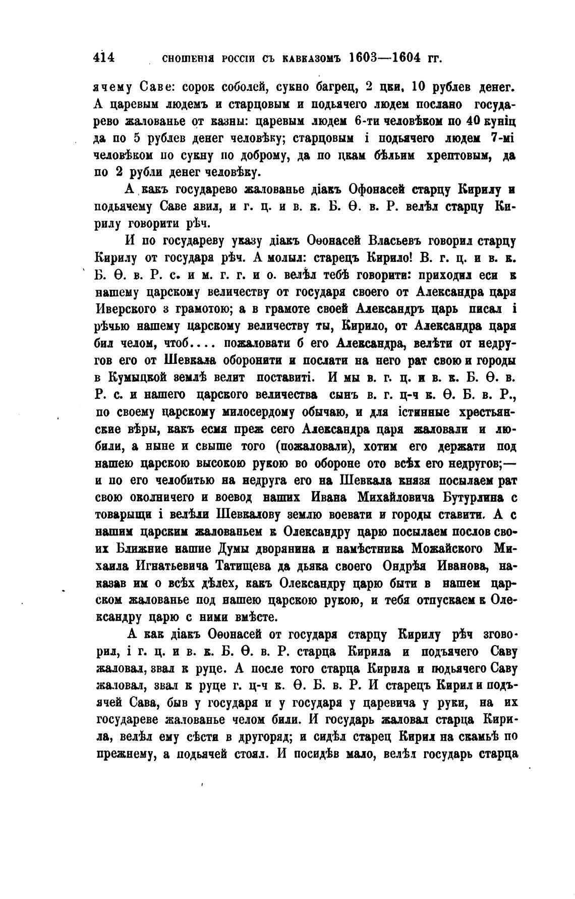 подьячему Саве явил, и г. ц. и в. в. Б. е. в. Р. вейл старцу Ки-