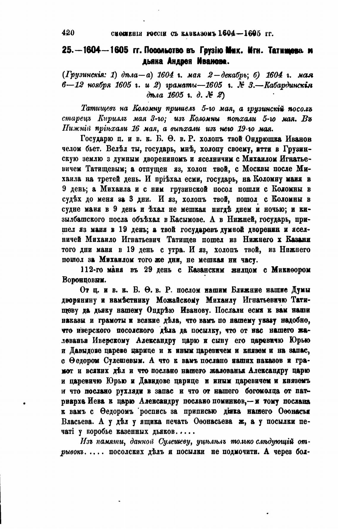 (Грузински.• 1) Дљла—а) 1604 1. мая 2—Дехабрь; б) 1604 е. маа