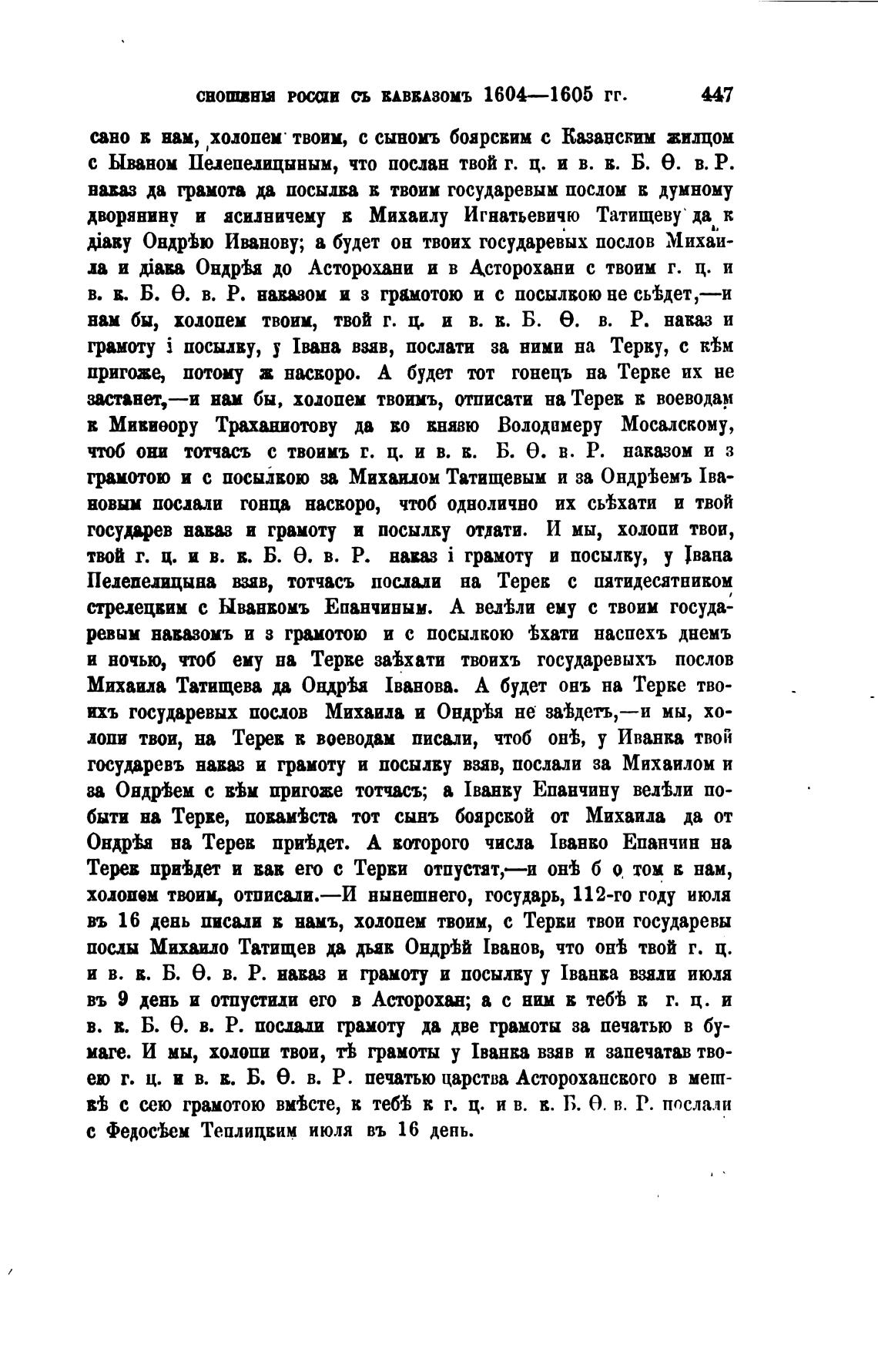 Михаила Татищева да Ондр'Ьа 1ванова. А будет онъ на Терке тво-
