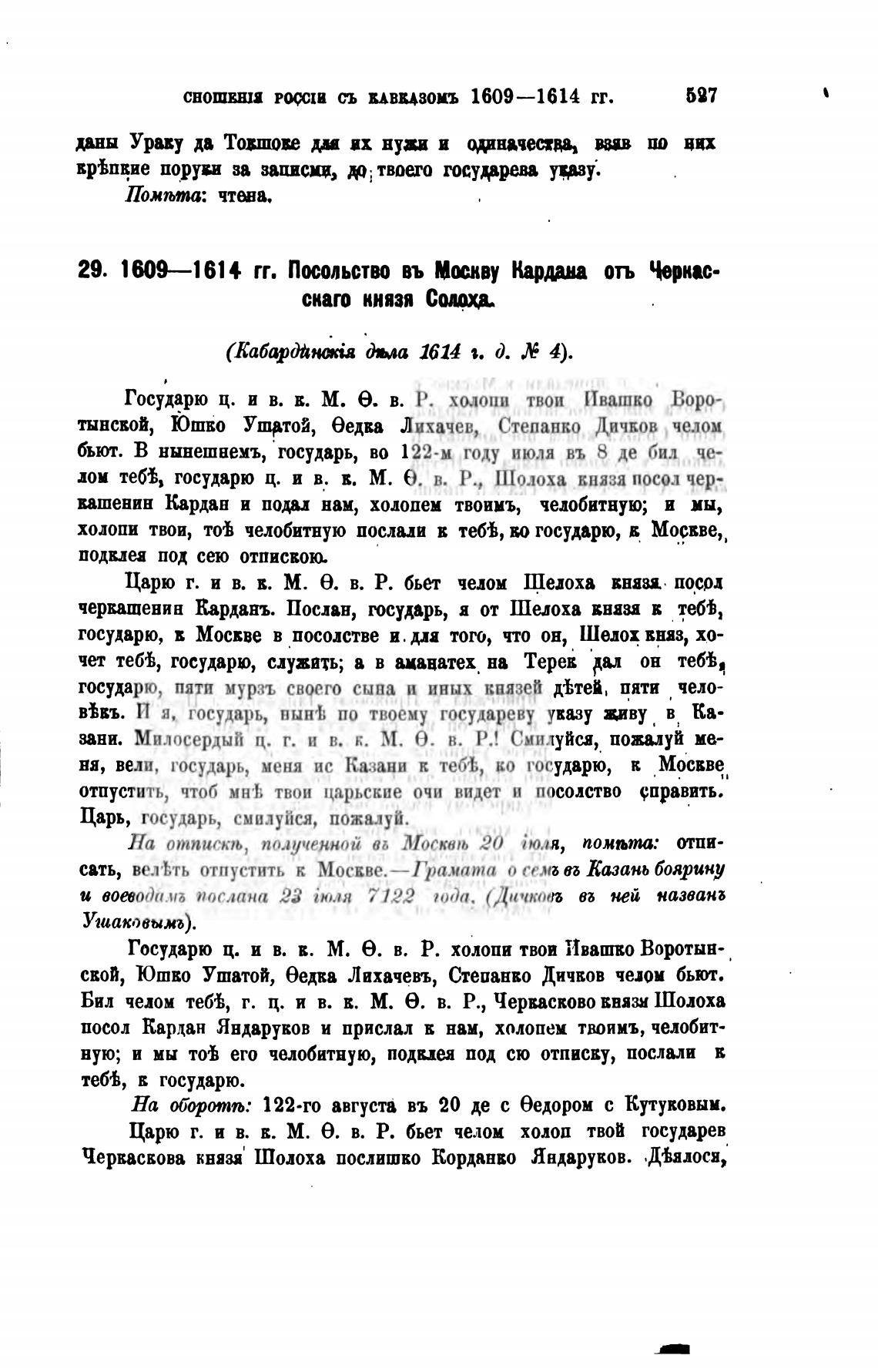 29. 1609—1614 гг. Посольство въ Мыву Карви отъ Черкас-