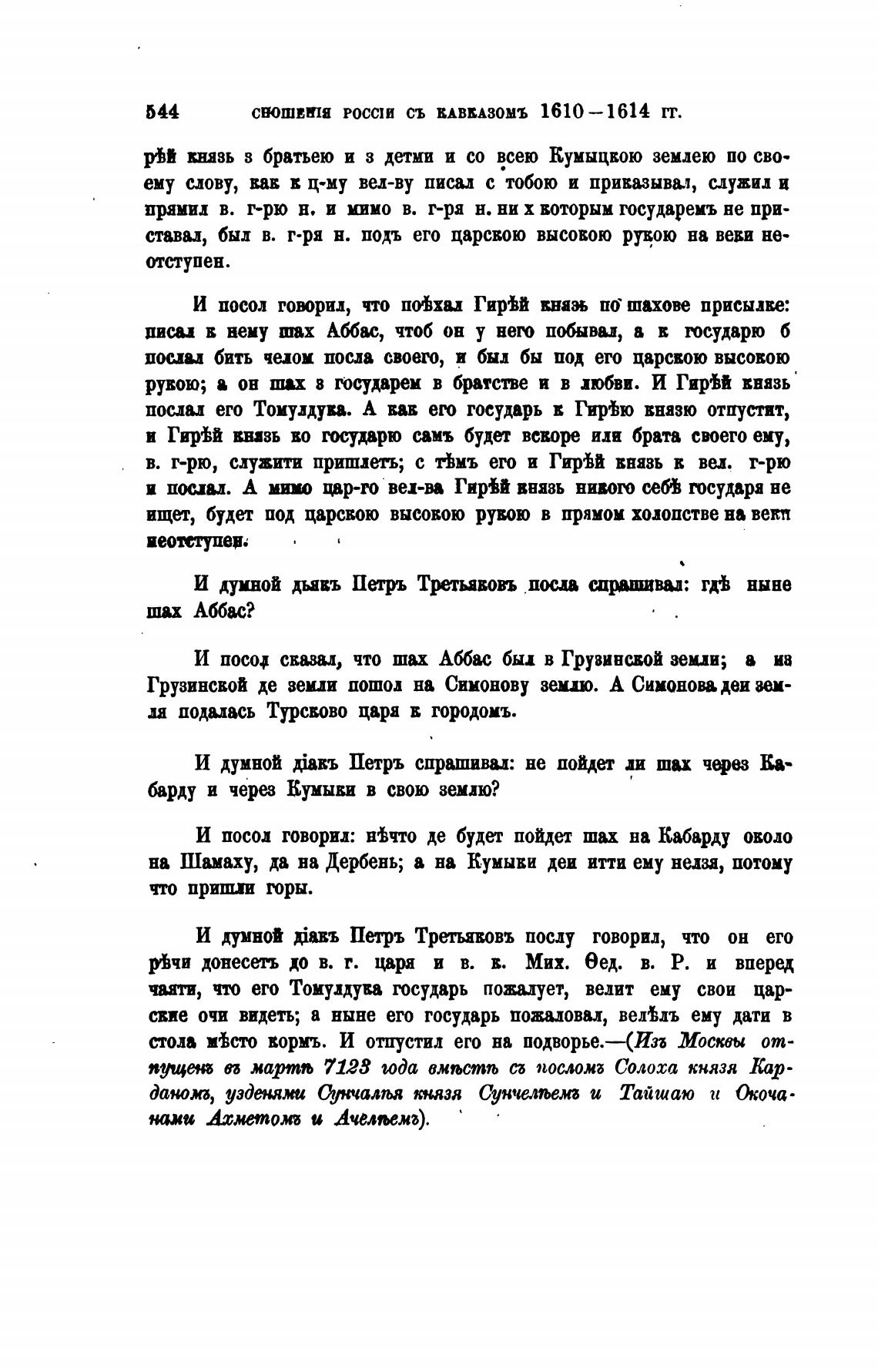 И посол говорил: В'Ьчто де будет пойдет шах на Кабарду оводо