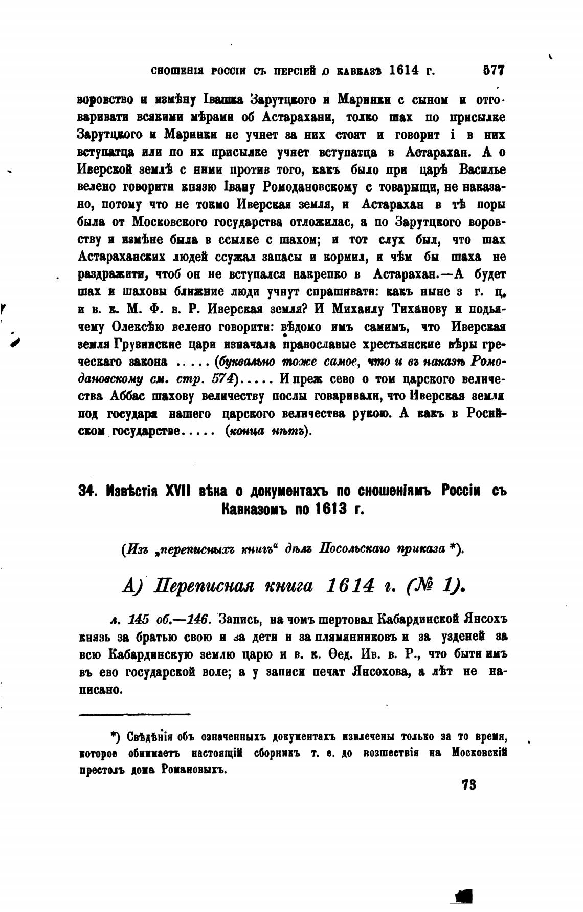 34. XVII в%ка о документахъ по сношен\яиъ съ