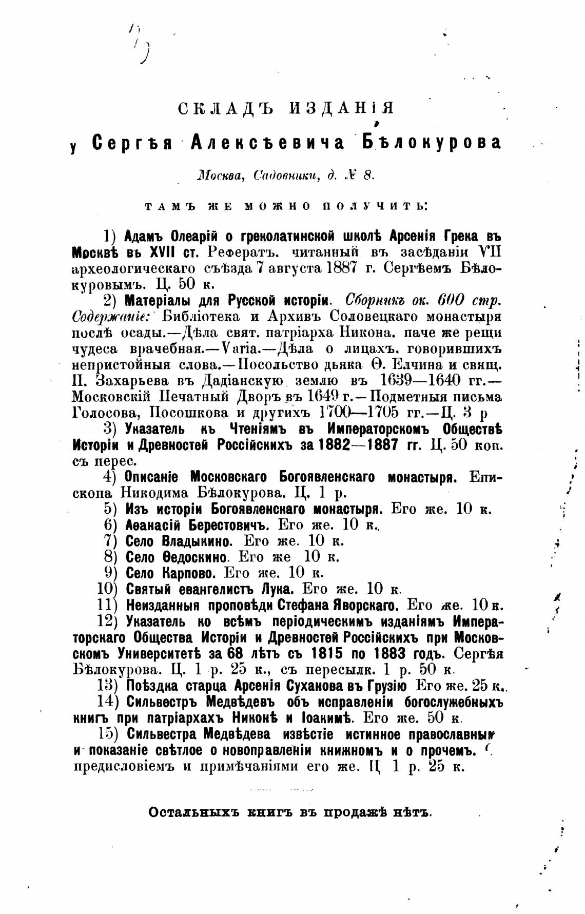 Остадьныхъ ЕНИГЪ въ продаж± нВтъ.