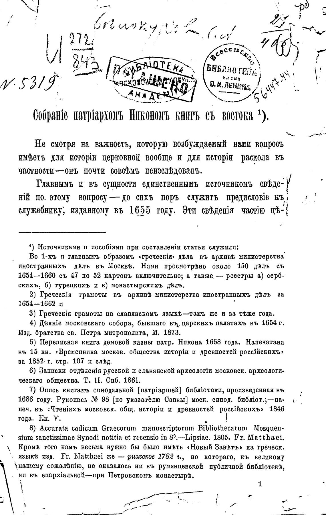 ообранћо патр\архомъ нИкономъ книгъ съ востока 1).