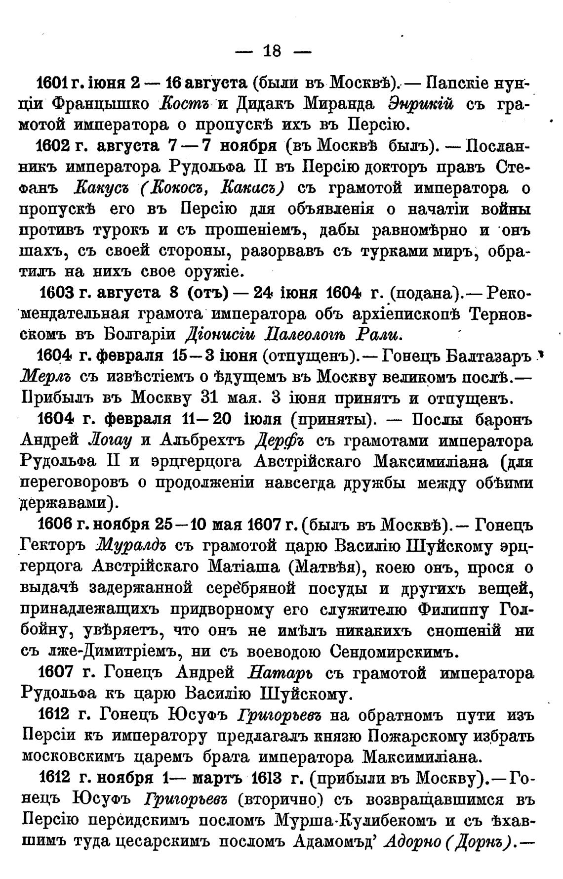 1607 г. Гонецъ Андрей Натаръ съ грамотой императора