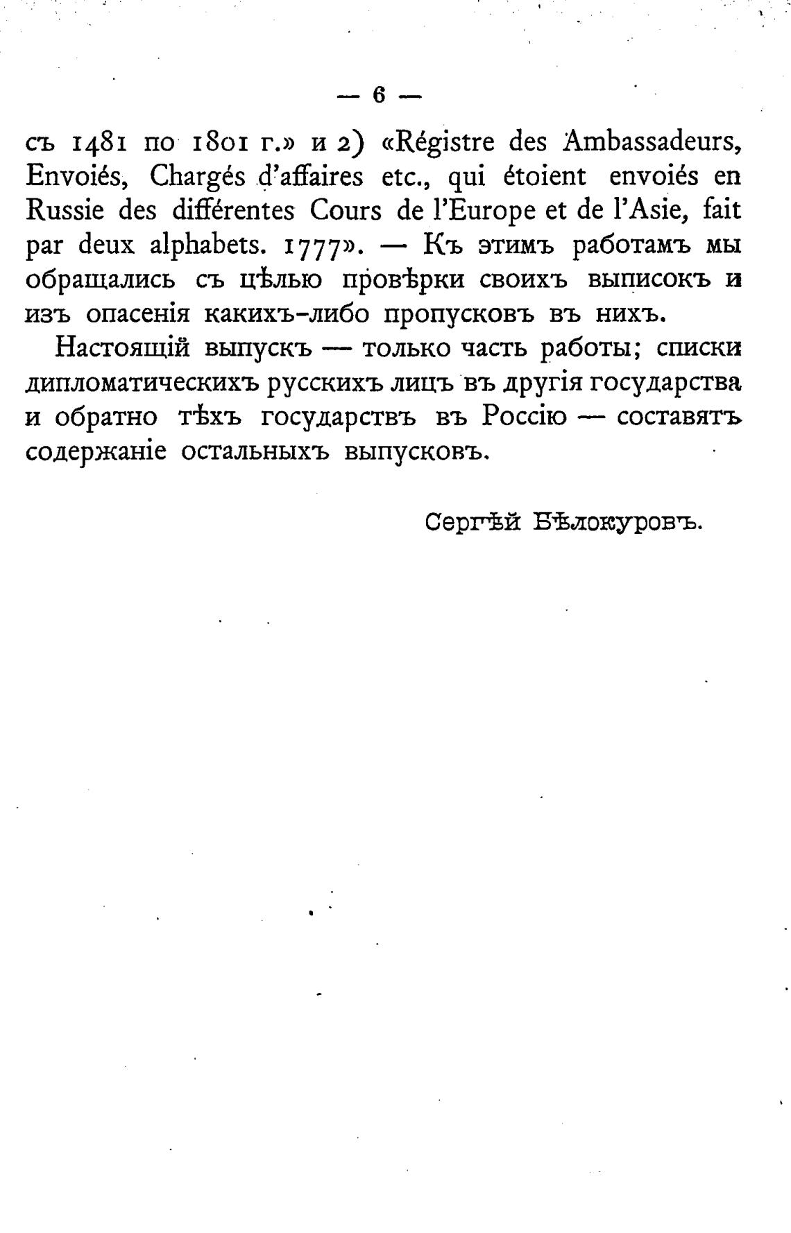 съ 1481 по 1801 г.» и 2) «R6gistre des Ambassadeurs,