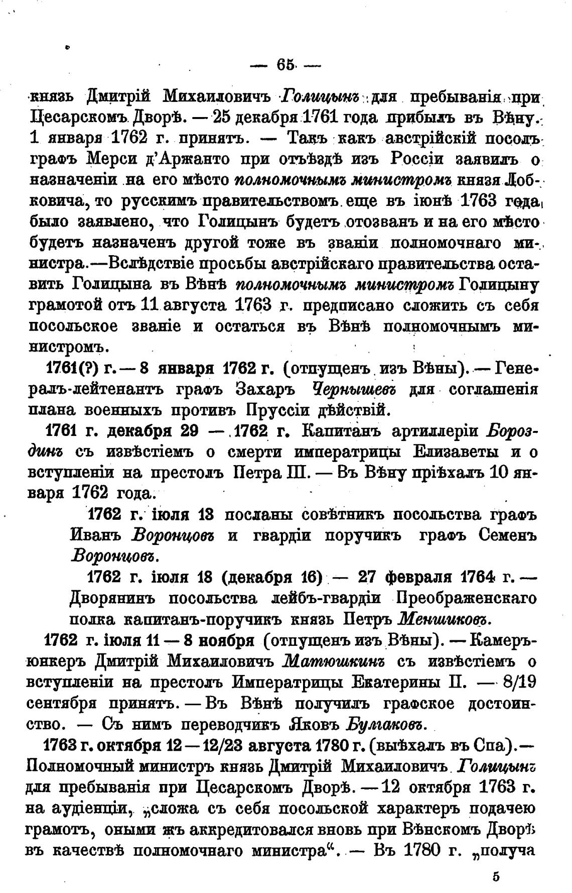 Цесарскомъ Дворв. — 25 декабря 1761 года дрибыдъ въ Вдну.