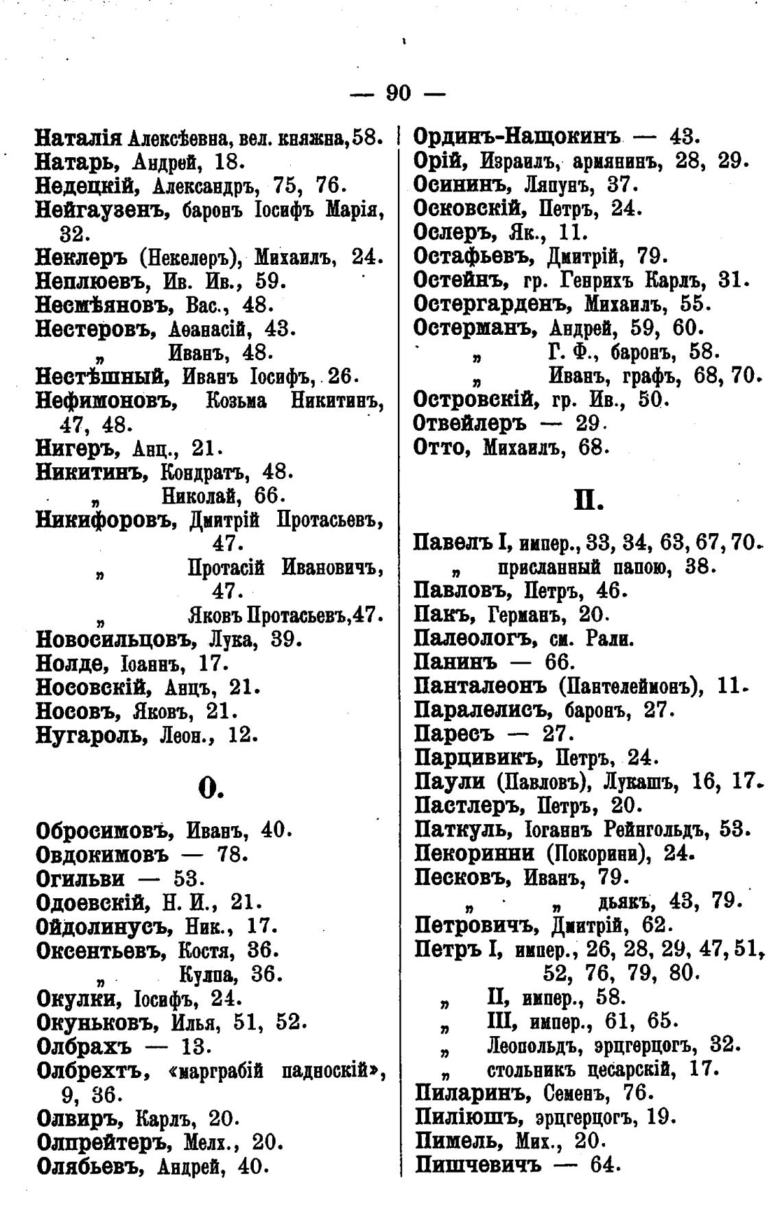 Павель 1, иипер., 33, 34, 63, 67, 70.