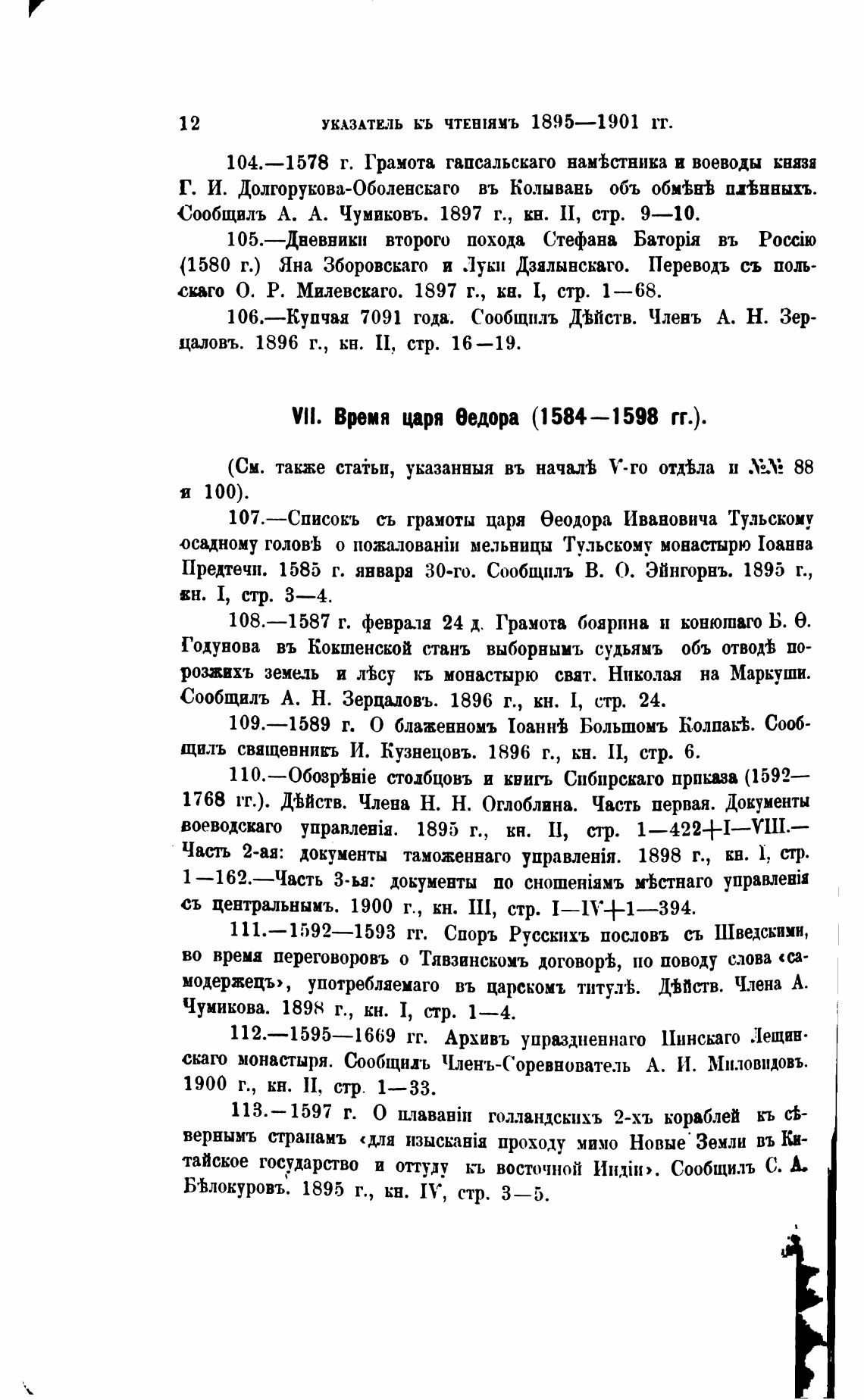 Vll. Время царя еедора (1584—1598 гг.).